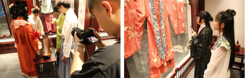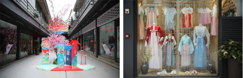 隨后,參會嘉賓與院校師生們一起參觀洋溢著國風古韻的“池上錦”漢服特色產業街區,并與街區品牌商戶進行互動交流,體驗漢服文化的豐厚底蘊。