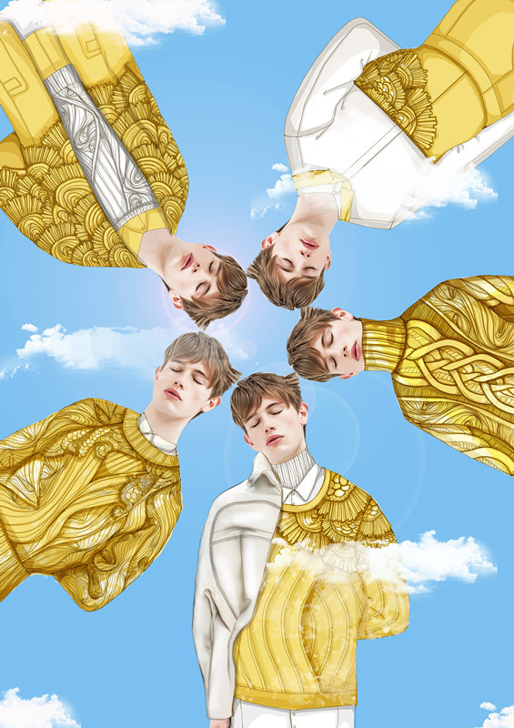作品闡述:《麥香》:生在這片土地,聞著泥土的芬芳,收獲著滿是夢想和希望的季節。靈感來源于麥田,麥浪的起伏就是不規則的紋樣,將針織手工棒針與電腦機織、鉤織相結合,選用不同紗線的不同 質地和性質,結合純手工的面料再造,將繩繡、絲帶繡等工藝融入其中,并以活躍的明黃色和白色相結合,使服裝穿著更加舒適、愉悅。