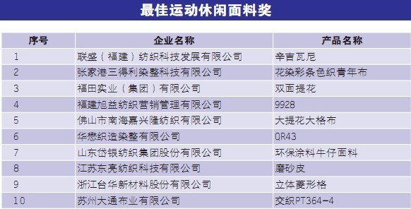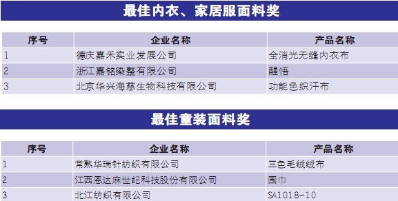 第二,五大品類面料特色鮮明。組委會將本次調查活動按照面料的最終用途分為男裝、女裝、運動休閑裝、童裝、內衣家居服五個品類。
