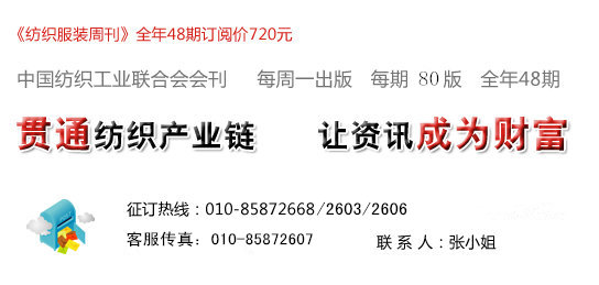 是國內外公開發行的大型紡織服裝專業刊物。每周一出版,每期80頁,國際流行8開彩色銅版紙印刷,全年48期。依托中國紡織工業聯合會及各專業協會的行業背景和強大信息源,以及各產業集群和專業市場的信息站,每期向讀者提供涵蓋全行業的紡織服裝信息約15萬字,被喻為紡織服裝行業不斷更新的信息庫,深度展現一個行業的產經脈絡,形成了無可比擬的獨家影響力。