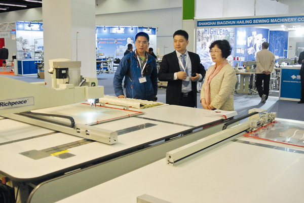 在法蘭克福展上,參展商都是國際一流的縫紉機廠家,而在整個展會上,富怡的展品是最全面的,從復雜CAD軟件,到縫制、繡花、絎縫、版房設備,“我們的最大優勢是可為用戶提供全套設備的解決方案,尤其是柔性材料上縫紉、裁剪、繡花的技術高手,這是別的廠家無可比擬的。”