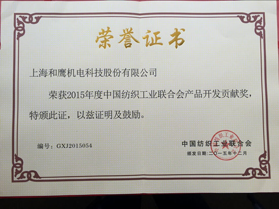 | 上海和鷹榮獲中國紡織工業聯合會“產品開發貢獻獎” |