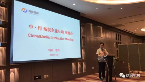 活動現場,印度紡織企業(yè)代表也進行了積極的發(fā)言,介紹企業(yè)情況,分享設備使用感受和對海佳設備的評價。