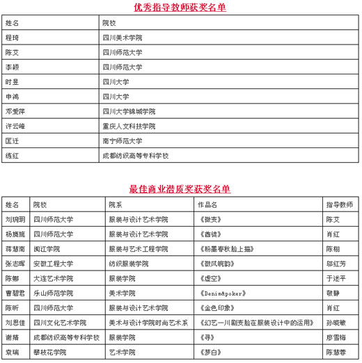 “首屆成都服裝設計新人獎大賽”由成都服裝(服飾)行業協會設計師專委會主任、四川師范大學服裝與設計藝術學院名譽院長、中國十佳時裝設計師張曉黎教授發起、策劃及作為大賽活動負責人組織承辦。大賽計有來自全國17個城市28所院校的58名優秀畢業生作品入圍復賽,36名優秀畢業生作品入圍決賽,由時裝周組委會邀請的7名服裝院校專家學者及著名服裝設計師擔任評審工作。