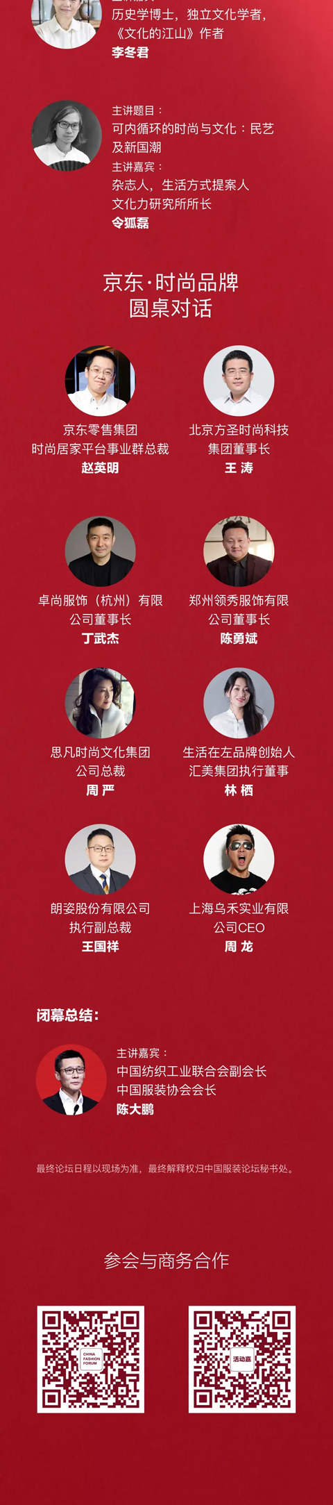 恩格斯曾說“人類所有的災難都是以歷史的進步作為補償。” 在當下特殊的環境中,中國服裝論壇將陪伴每一位服裝人應積極應對、思變,不斷地調整、創新,體現出紡織服裝人對行業的信心、熱愛、執著、堅守,共同渡過難關,求得出路。 #凌迪Style 3D · 2020中國服裝論壇 即將開幕,敬請期待# 8月20日-21日 北京 · 東方君悅大酒店 掃描上方二維碼報名參會~ 中國服裝論壇創辦于1996年,由中國服裝協會主辦,每年3月底在中國北京舉行,迄今已成功舉辦24屆。中國服裝論壇以“啟迪創新 煥發品牌”為核心使命,秉承國際化、高質量、可持續的視野、標準和框架,將不同的創見者、批評者和決策者連接起來,為中國服裝企業家提供高質量的思想產品,構建有持續影響力和穿透力的思想體系,已成為中國服裝產業先進理念和發展模式的重要策源地。 |