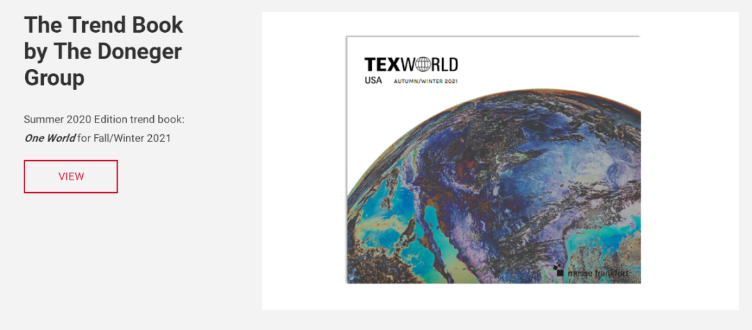 由廣東省商務(wù)廳主辦的“粵貿(mào)全球”線上平臺同時亮相,共吸引三十余家廣東服裝、面料企業(yè)參加。新大地服裝城以及流花市場均攜優(yōu)質(zhì)商戶積極參與其中。本屆紐約展特別邀請紐約知名流行趨勢公司Doneger Group制作了《電子流行趨勢手冊》,此手冊除了包含最新的流行趨勢,還將此次參展企業(yè)最新的面輔料、服裝結(jié)合流行趨勢進行推薦,并且買家可在線上平臺找到推薦企業(yè)的相關(guān)信息,直接進行貿(mào)易洽談。此外,豐富的線上論壇也在展期同步進行。