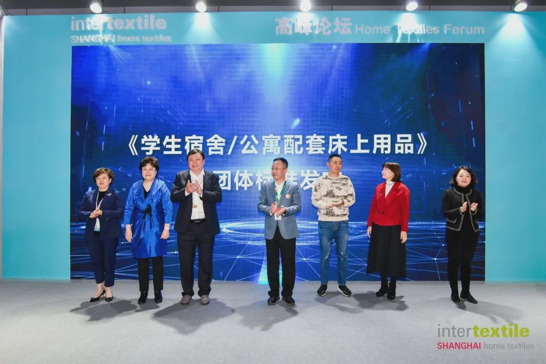 中國(guó)紡織工業(yè)聯(lián)合會(huì)副會(huì)長(zhǎng)、中國(guó)家用紡織品行業(yè)協(xié)會(huì)會(huì)長(zhǎng)楊兆華,全國(guó)家紡標(biāo)委會(huì)秘書(shū)處承擔(dān)單位江蘇省紡織產(chǎn)品質(zhì)量監(jiān)督檢驗(yàn)研究院院長(zhǎng)張彤,天貓家居負(fù)責(zé)人影承,江蘇大唐紡織科技有限公司副總經(jīng)理唐利芳、羅萊生活科技股份有限公司副總裁陶永瑛,上海妙宅科技發(fā)展有限公司董事長(zhǎng)馮璉、南方寢飾科技有限公司副總裁謝慧慧共同啟動(dòng)了《學(xué)生宿舍/公寓配套床上用品》團(tuán)體標(biāo)準(zhǔn)發(fā)布儀式。