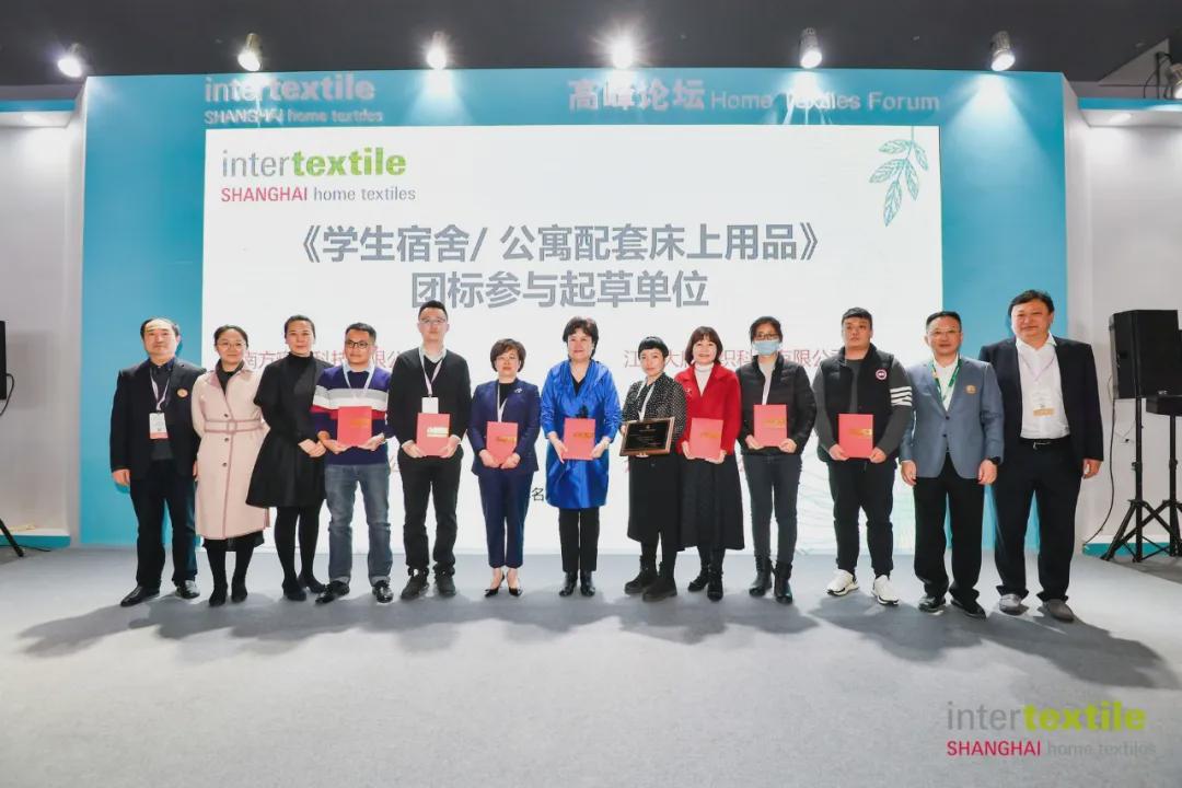 樹(shù)行業(yè)標(biāo)桿,推行業(yè)標(biāo)準(zhǔn),《學(xué)生宿舍/公寓配套床上用品》團(tuán)體標(biāo)準(zhǔn)的成功制定離不開(kāi)參與起草單位付出的大量努力,領(lǐng)導(dǎo)嘉賓們?yōu)?6家起草單位頒發(fā)了證書(shū)。