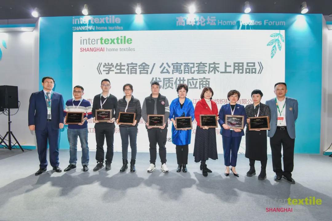 中國(guó)國(guó)際貿(mào)易促進(jìn)委員會(huì)紡織行業(yè)分會(huì)常務(wù)副會(huì)長(zhǎng)梁鵬程,天貓家居負(fù)責(zé)人影承,中國(guó)家用紡織品行業(yè)協(xié)會(huì)副會(huì)長(zhǎng)朱曉紅,中國(guó)紡織信息中心產(chǎn)業(yè)合作部主任劉兆祥、中國(guó)家用紡織品行業(yè)協(xié)會(huì)副秘書(shū)長(zhǎng)葛江霞為山東魏橋嘉嘉家紡有限公司、上海水星家用紡織品股份有限公司、福建佳麗斯家紡有限公司、寧波開(kāi)誠(chéng)工藝品有限公司、重慶小林被服有限公司、江西藍(lán)天宇家紡用品股份有限公司、江蘇康乃馨集團(tuán)驛之家酒店紡織品有限公司、江蘇蘇美達(dá)紡織有限公司、江蘇夢(mèng)蘭集團(tuán)有限公司頒發(fā)了證書(shū)。