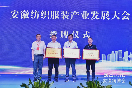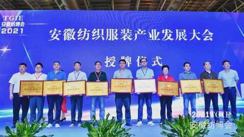 現場舉行安徽省紡織行業協會揭牌儀式、安徽省紡織行業協會黨支部揭牌儀式、安徽省紡織行業協會專家顧問委員會揭牌儀式、中國紡織服裝大數據中心(安徽中心)揭牌儀式。為協會會長、執行會長、監事會主席、常務副會長、會長、監事會副主席授牌。