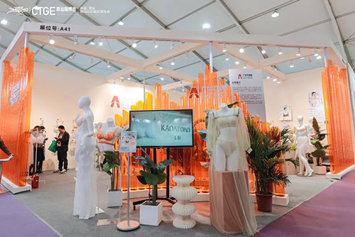 在鎮盛的展位上,模特身著帶有絨感的內衣顯得格外顯眼。莊漢鋒在接受記者采訪時談到,本次鎮盛主要推銷具有“絨”感的內衣面料,這種絨感并不是經過后處理得到,而是在織造過程中就已擁有,如今,這種面料產品制成的內衣已經成為貓人等品牌的“爆款”。
