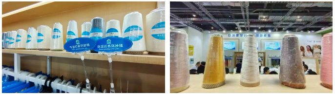 恒豐集團一直以功能性紗線研發(fā)為主業(yè),每年推出上百種新品,從源頭提升產(chǎn)品的可持續(xù)競爭力。此次展會帶來了馬油纖維、姜蛋白纖維及花青素纖維的各類混紡紗線。據(jù)了解,由馬油纖維混紡紗線織造的面料具有光澤亮麗、柔軟親膚、舒適透氣、滋潤護膚等優(yōu)點,滿足人們保健、舒適的穿著需要,是高檔服飾領(lǐng)域應(yīng)用的不二之選;姜蛋白混紡紗線有顯著的抗菌、護膚和保濕功能,可應(yīng)用于嬰童服飾、內(nèi)衣褲等下游領(lǐng)域;花青素纖維混紡紗線則具有高效的天然抗菌性能和抗氧化功能,是襪品、口罩、嬰童裝、家紡等行業(yè)的新寵。