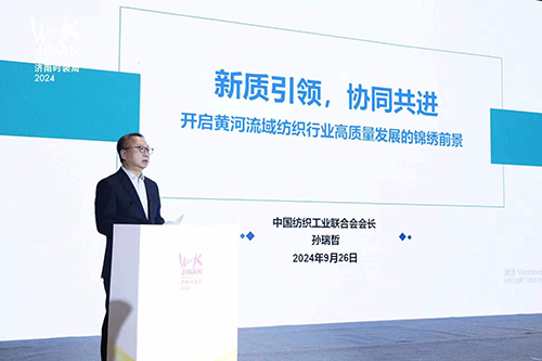 ![]() 孫瑞哲會長現(xiàn)場作《新質(zhì)引領(lǐng),協(xié)同共進(jìn)——開啟黃河流域紡織行業(yè)高質(zhì)量發(fā)展的錦繡前景》主題報告,重點分析了如何“正確理解因地制宜發(fā)展新質(zhì)生產(chǎn)力的黃河特色”以及”如何開創(chuàng)沿黃九?。▍^(qū))紡織服裝行業(yè)高質(zhì)量發(fā)展新局面”。