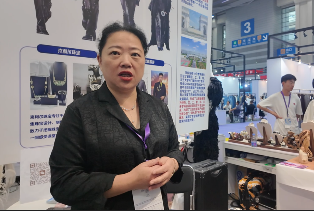 ![]() “江西服裝學院的市場化程度較高,在本次展會上,除了展示畢業(yè)生作品之外,我們還帶了兩個在校內注冊了公司的學生創(chuàng)業(yè)的作品。這些學生的創(chuàng)業(yè)作品在展會上非常受歡迎的,特別有一些外商也表示了合作意向?!苯鞣b學院創(chuàng)新創(chuàng)業(yè)學院院長段婷介紹說。