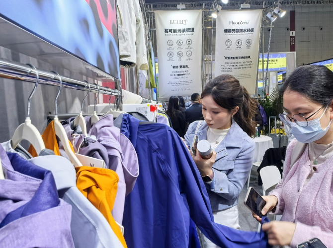 在綠色可持續發展領域,嘉耀紡織的實踐同樣彰顯專業素養。本次展會中,企業重點展示了其在環保領域的舉措:擴大生物基材料、可降解材料、碳捕捉材料等零碳和負碳材料的應用;采用原液著色、無水染色、低溫染色等技術,縮短工藝流程、降低染色能耗;全面推進無氟防水整理,并引進最先進的安捷倫6475氟化物檢測設備進行嚴格管控,完美契合本次展會可持續創新專區的理念,也呼應了全球紡織行業“雙碳”目標與綠色消費趨勢,成為眾多注重環保的采購商的優選合作對象。