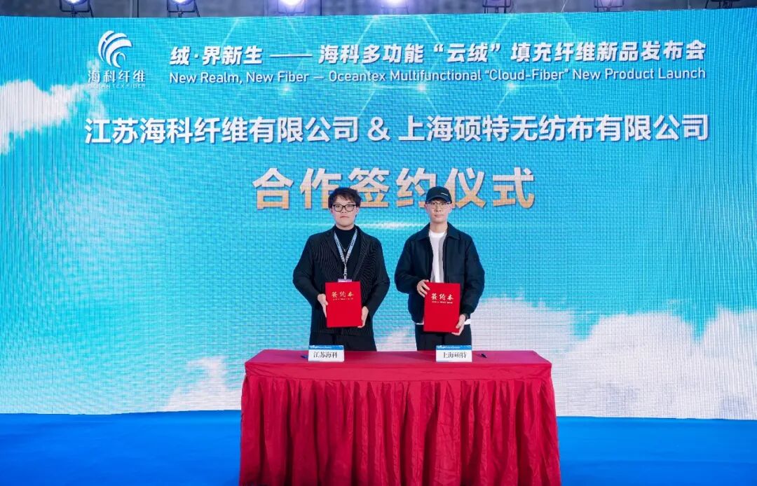 ![]() ![]() ![]() 會上,江蘇海科與上海水星家用紡織品股份有限公司、上海碩特無紡布有限公司、恒豐(化纖)科技有限公司3家合作伙伴簽署戰略合作協議,標志著云絨系列產品正式進入市場化布局階段,產業鏈協同邁出關鍵一步。
