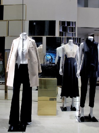 ![]() 這個櫥窗延續(xù)著洗練的風(fēng)格,與右上角同一款手包的展示,使櫥窗之間產(chǎn)生了延續(xù)性,兩套服裝線條優(yōu)美、款式簡單,品牌風(fēng)格非常突出,這是值得國內(nèi)品牌學(xué)習(xí)的地方。