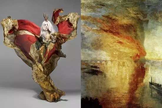 △ Lady Gaga雜志大片 vs 英國畫家特納的《國會大廈的火災(zāi)》