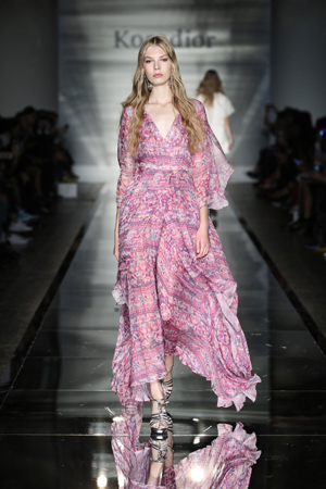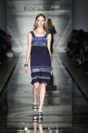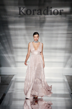 米蘭達·可兒 震撼頂級時尚殿堂 作為本季米蘭時裝周官方日程表上唯一一家中國商業女裝品牌,Koradior的這場發布為國際時尚界營造了一幅獨具特色的南中國風情畫,并完整地呈現了Koradior獨到的原創設計實力,再度提升了中國商業女裝品牌在國際時尚界的綜合影響力。 發布會當天,國際時尚泰斗意大利全國時尚協會、米蘭時裝周名譽主席Mario?Boseli、米蘭市副市長Cristina Tajani,中國駐米蘭領事館總領事王冬女士蒞臨恭賀,頭排看秀。國際頂級超模米蘭達?可兒(Miranda Kerr)再次現身Koradior秀場,穿著一襲Koradior 2017春夏粉色深V禮服,為當天的米蘭大皇宮灑下璀璨星光。 值得一提的是,Koradior的這場發布會還使用了花椒、映客、一直播、美拍、優酷、土豆、天貓、首淘等平臺進行同步直播,大膽嘗試了時尚界熱議的“現秀現買”模式。 為第一時間了解Koradior在米蘭時裝周的本場發布,本刊記者在第一時間專訪了珂萊蒂爾控股有限公司董事長金明及Koradior品牌設計總監胡琦。 據胡琦介紹,Koradior的本季發布在主題上延續了La Koradior 2016米蘭時裝周 “中國映像”大秀的主題。在創作過程中,胡琦攜Koradior團隊在南方的苗族村落采風,試圖追尋久遠的服飾源起之美。在他看來,是那些最美的南中國文化印記,成就了Koradior的本季作品。 45套創意華服展現南國韻律 仔細來看Koradior本次發布的45套創意華服,既有南中國民族韻味又有時尚現代感。從中國著名的宋代山水寫意畫中,讓人感受到大自然無與倫比的美和詩意;發布會現場的全鏡面T臺創意則充滿未來時空的想象;光影穿梭間,營造出如夢似幻的南中國仙境。Koradior在米蘭時裝周的這場大秀可謂奏響了一曲清揚唯美的中國韻律。 第一系列:律動的生命 Melody of Every day 設計師從中國南方民族傳統的刺繡紋樣和東方平面化的服裝結構中汲取靈感,通過打破重組和數碼抽象化的手法將東方元素圖案轉變得現代時尚感:律動感的流蘇、搖曳的飄帶、手工感的串珠編繩、精巧的流線褶皺等諸多富有東方風情的服飾精華元素細膩唯美,打造具有獨特魅力的日常裝系列,烘托出女人的優雅時尚氣質和趣味小心機。