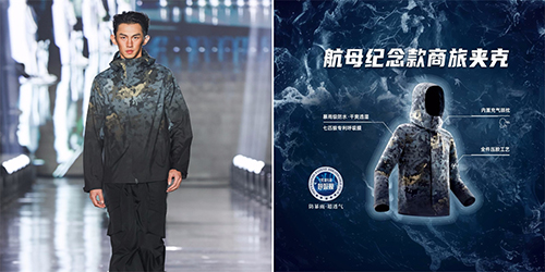 以航海科技為靈感而打造的商旅科技夾克,是此次大秀當之無愧的主角,其中由七匹狼攜手看艦文創共同推出的航母紀念款,不僅承接了航母所代表的文化與科技,也凝聚了七匹狼的精工匠心,用時尚語言致敬科技力量。