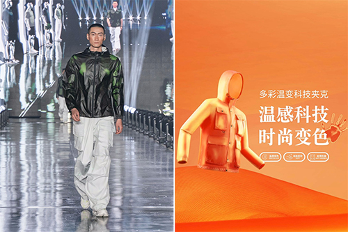 ![]() 科技屬性拉滿的“溫變夾克”,則運用了溫感變色科技,面料表層會根據體溫與環境溫度的變化而改變顏色,為夾克增添更多玩趣屬性。