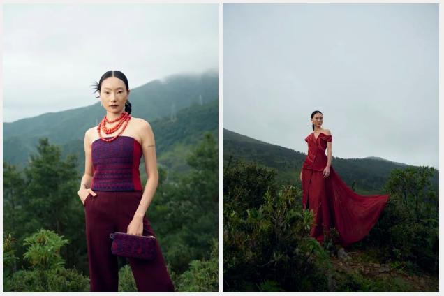 衣迪阿諾是越西衣迪阿諾文化旅游創新開發有限責任公司旗下以越西民族傳統文化為脈絡的時裝品牌,自創立之初就由公司特聘的中國著名非物質文化遺產傳承人阿牛阿呷親自“操刀”設計。在本季新品中,設計師采用越西城市標志性紅色為主體色系,以當地山野林間生長的茜草為染色原料,充分發揮中國特色的草木染傳統技藝,以實踐作答時尚可持續發展的全球命題。