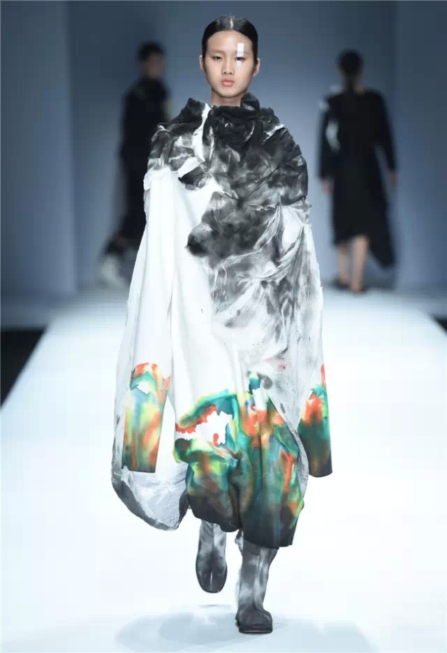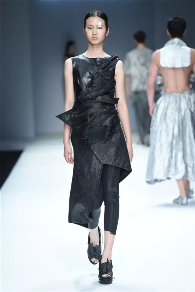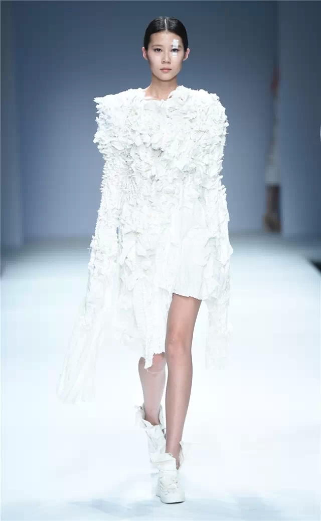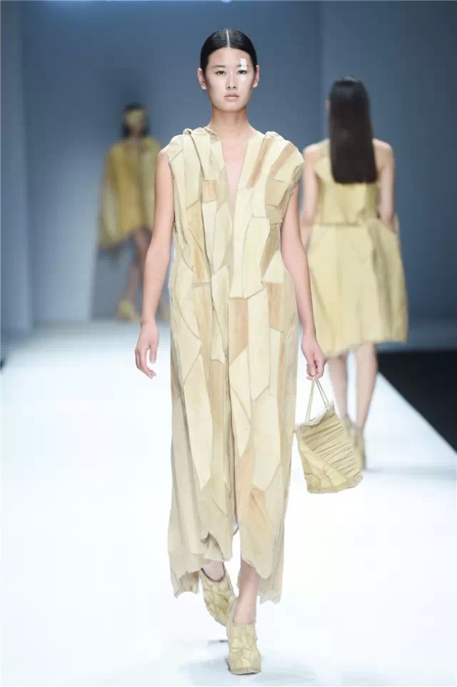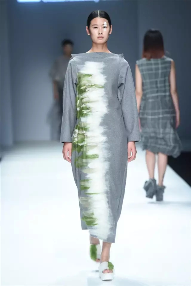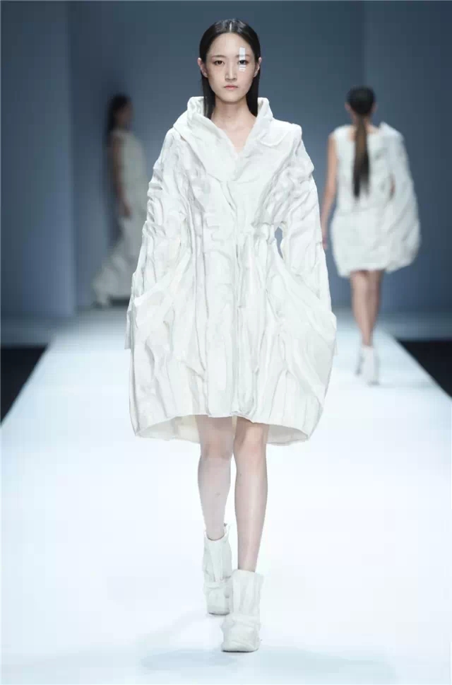 中國美術(shù)學(xué)院設(shè)計藝術(shù)學(xué)院畢業(yè)生發(fā)布的作品以“藝境”為主題,通過51名畢業(yè)生的作品,展示衣藝相通的精髓。 想必呼應(yīng)社會熱點話題的霧色口罩及發(fā)光長裙一定令人印象深刻,模特手執(zhí)的畫框、雨傘,以及不同造型的面罩、面紗,都體現(xiàn)了細(xì)節(jié)處的獨具匠心。 如木紋、墻體等元素的出現(xiàn)卻證明了這場秀雖如畫如煙,但也扎根于生活,更不要提那明顯脫胎于水袖的夸張袖擺,年輕的學(xué)生們同樣也在致敬傳統(tǒng)。 藝造境,境生藝。所有的紋路和皺褶都在告訴你,這場發(fā)布會在潛移默化地渲染生活中的草木花香,即使這些服裝的創(chuàng)作者是一些20歲出頭的年輕人,作品里卻也流露著絲絲禪意,而當(dāng)他們歡呼著跑上T臺向觀眾們豎起大拇指,青春的脈搏就這么來了。(黃天玉)