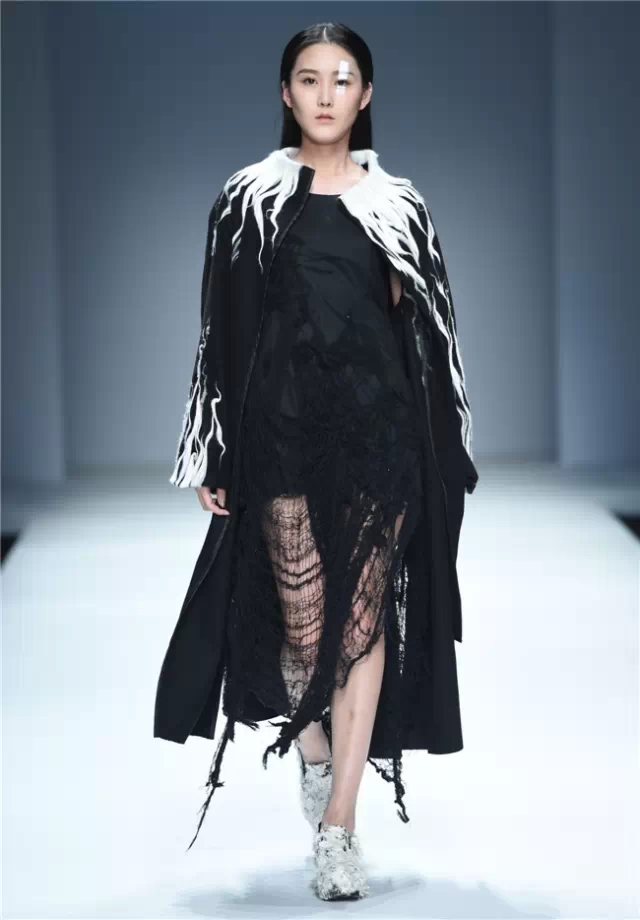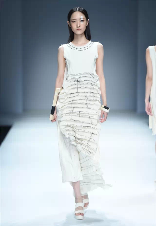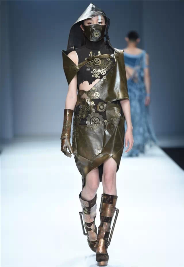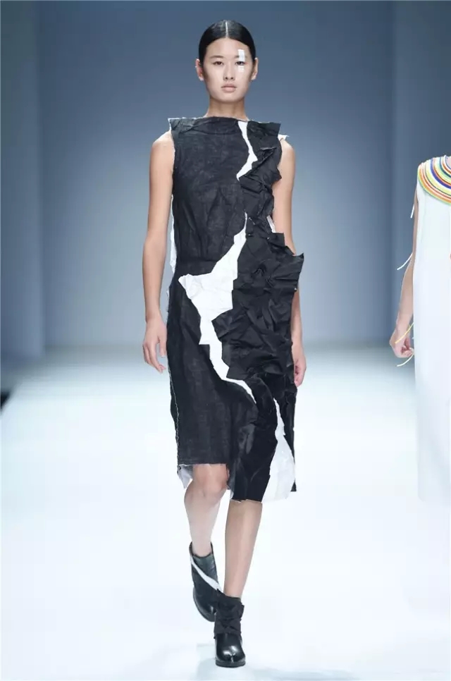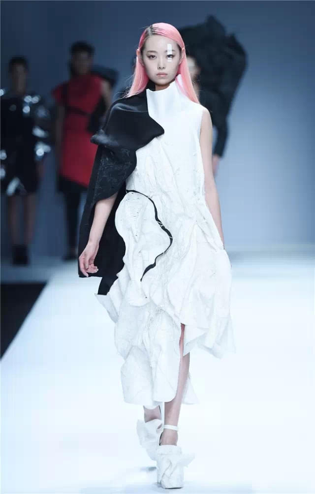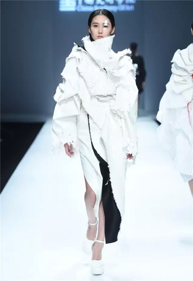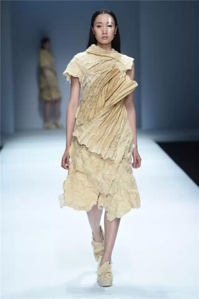中國美術(shù)學(xué)院設(shè)計藝術(shù)學(xué)院畢業(yè)生發(fā)布的作品以“藝境”為主題,通過51名畢業(yè)生的作品,展示衣藝相通的精髓。 想必呼應(yīng)社會熱點話題的霧色口罩及發(fā)光長裙一定令人印象深刻,模特手執(zhí)的畫框、雨傘,以及不同造型的面罩、面紗,都體現(xiàn)了細(xì)節(jié)處的獨具匠心。 如木紋、墻體等元素的出現(xiàn)卻證明了這場秀雖如畫如煙,但也扎根于生活,更不要提那明顯脫胎于水袖的夸張袖擺,年輕的學(xué)生們同樣也在致敬傳統(tǒng)。 藝造境,境生藝。所有的紋路和皺褶都在告訴你,這場發(fā)布會在潛移默化地渲染生活中的草木花香,即使這些服裝的創(chuàng)作者是一些20歲出頭的年輕人,作品里卻也流露著絲絲禪意,而當(dāng)他們歡呼著跑上T臺向觀眾們豎起大拇指,青春的脈搏就這么來了。(黃天玉)