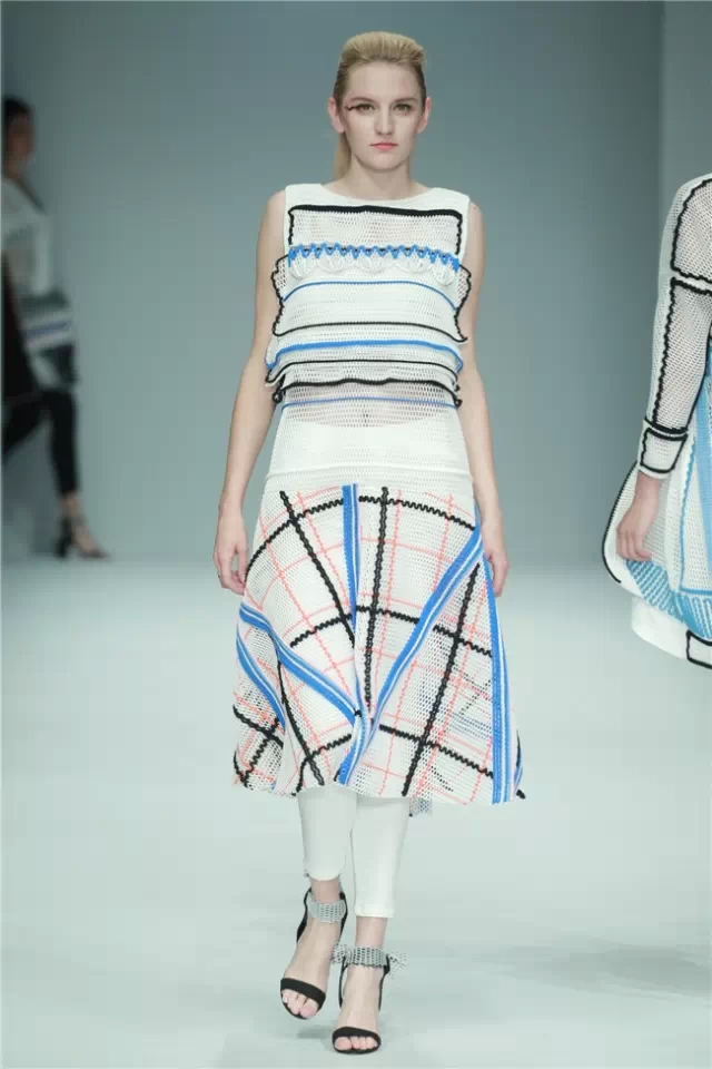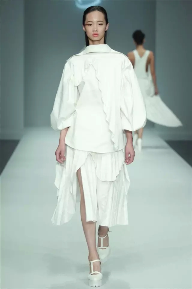 四川美術學院設計藝術學院發布的主題為“互聯、共生”,互聯意味著交換與兼容、互通與聯結、跨界與融合、迭代與進化,需要在快速變化中找到最合適的平衡點。共生激發開放性的思考,求同存異,包含著更多的可能。 此次作品突出創新性和時代性,面料的選擇與再加工,設計廓形和內部構造的風格也非常多樣化。開場宣傳片上記錄的那一句“每一根線都要注入生命”仿佛是給本場發布秀最深刻的總結。 音樂響起,模特入場,觀眾的目光注視向同一個方向。整體來看,本場發布秀的服裝色彩并不花哨,從純色過渡到多元的色彩。每一套系的服飾風格明顯,比如時裝感十足的摩登女裝、面料上印有紅唇的個性服飾、民族感濃郁的田園風。 本場發布秀的服飾選材豐富,并且通過面料再造、數碼印花等多種手段實現設計創意。值得一提的是,服裝的配飾設計也很突出,黑色系皮帶、圓球裝手包融合了整體搭配,使服裝更具藝術感染力。 多種設計創意糅合在一起,讓人不得不贊嘆這些年輕設計師的想法獨特。難能可貴的是,他們將圖紙上的設計手繪轉換成了真正的服飾,收獲了臺下觀眾陣陣贊賞的掌聲。(王賽)