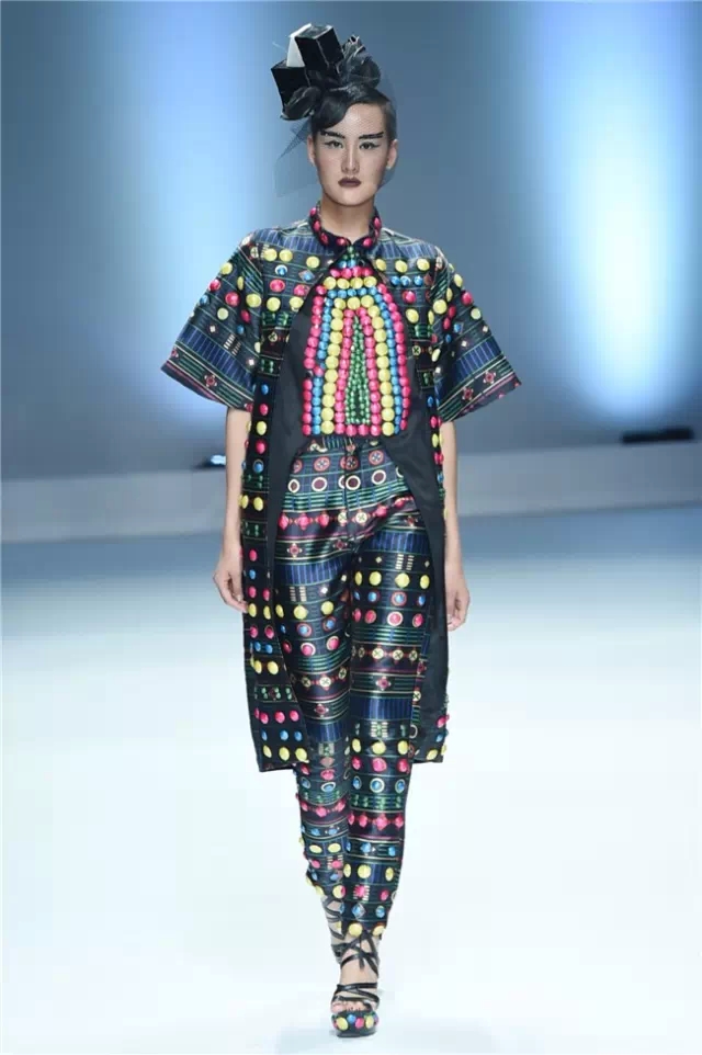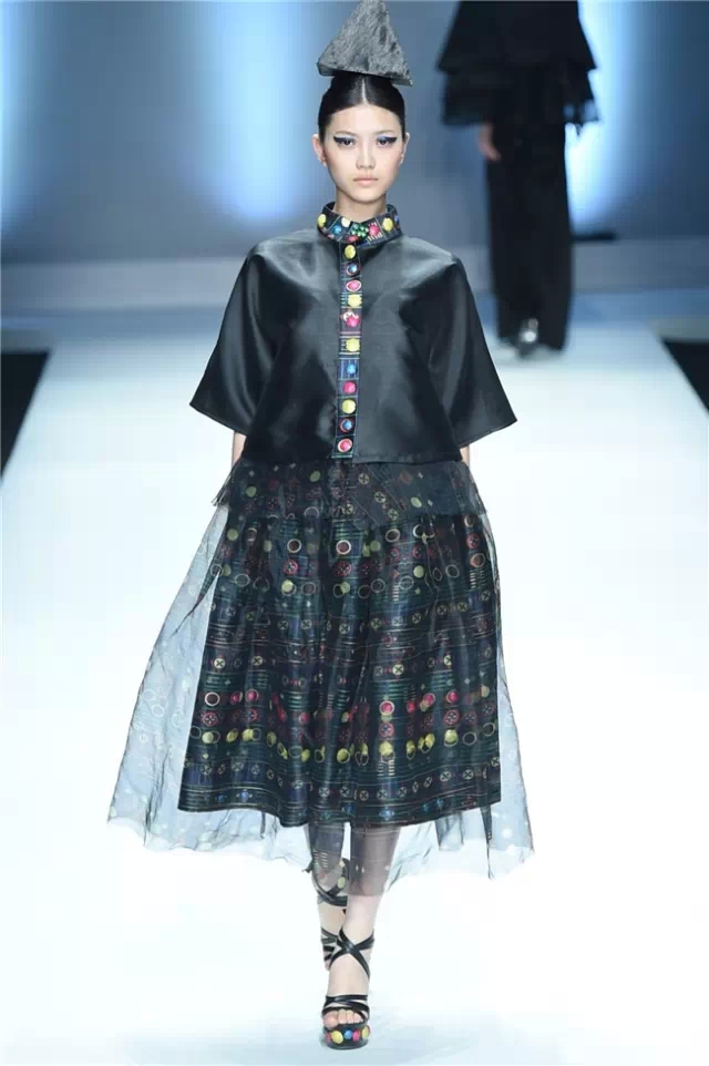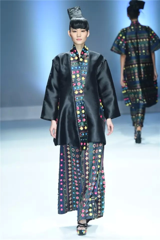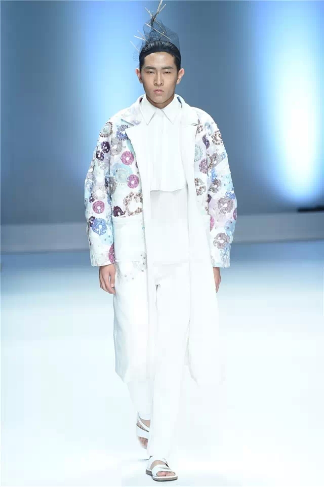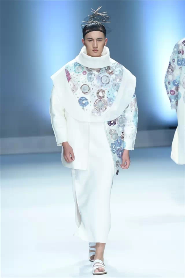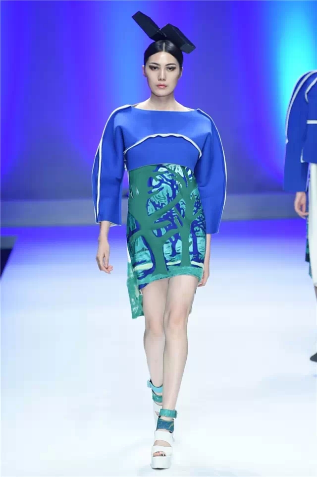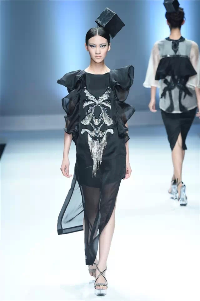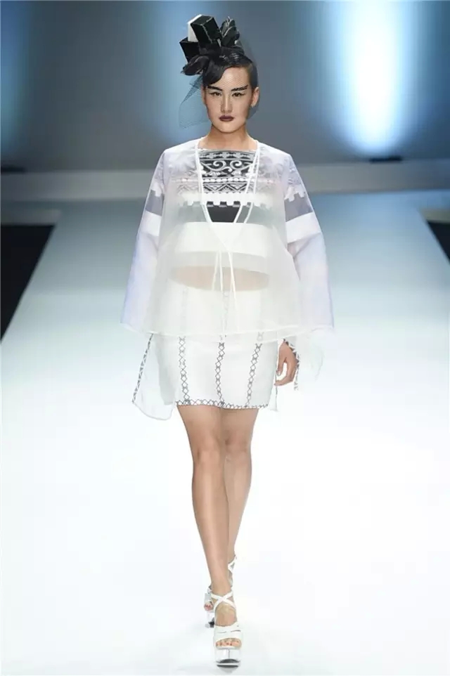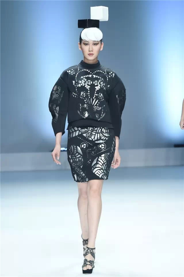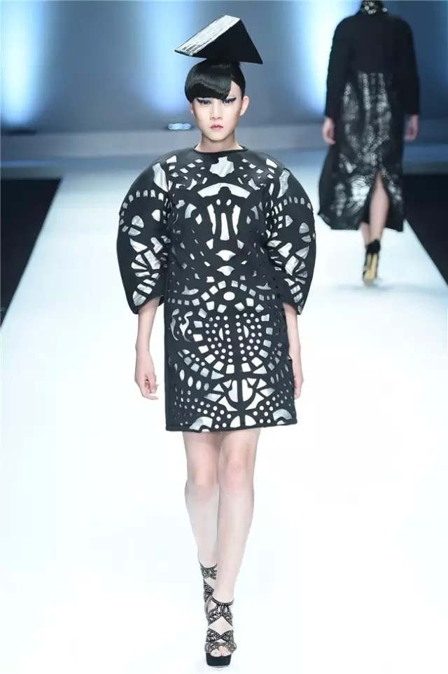 本次發(fā)布秀的設(shè)計(jì)主題是“和合”,從“和達(dá)科技、和愛(ài)人文及和處自然”三個(gè)方面,詮釋中華民族獨(dú)創(chuàng)的哲學(xué)概念。在和生、和處、和立、和愛(ài)的交融中,江西服裝學(xué)院的師生們用充滿創(chuàng)意的設(shè)計(jì)理念,構(gòu)筑起設(shè)計(jì)理念的文化精髓,展示服飾之美。 服飾的設(shè)計(jì)亮點(diǎn)在于選擇以時(shí)代魅力和最高價(jià)值為藝術(shù)導(dǎo)向,將生活藝術(shù)與時(shí)尚融合,通過(guò)層次感的搭配、簡(jiǎn)約的廓形和靈動(dòng)的色彩,編織細(xì)膩的靚衣美裳。 伴隨著開(kāi)場(chǎng)小模特悠緩的步伐,一場(chǎng)帶有民族哲學(xué)設(shè)計(jì)思想的發(fā)布秀拉開(kāi)序幕。緊接著,音樂(lè)律動(dòng)起來(lái),服飾展示也豐富起來(lái)。服裝的整體色調(diào)統(tǒng)一,黑白、灰藍(lán)、墨綠低調(diào)不張揚(yáng),面料選擇則更多樣,飄逸的歐根紗、平實(shí)的圖案、立體刺繡,每一種元素和諧互補(bǔ)。模特佩戴的幾何狀頭飾也是整套系服裝的亮點(diǎn)。(王賽)