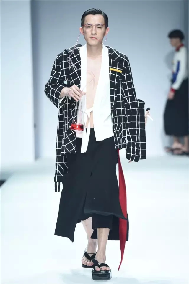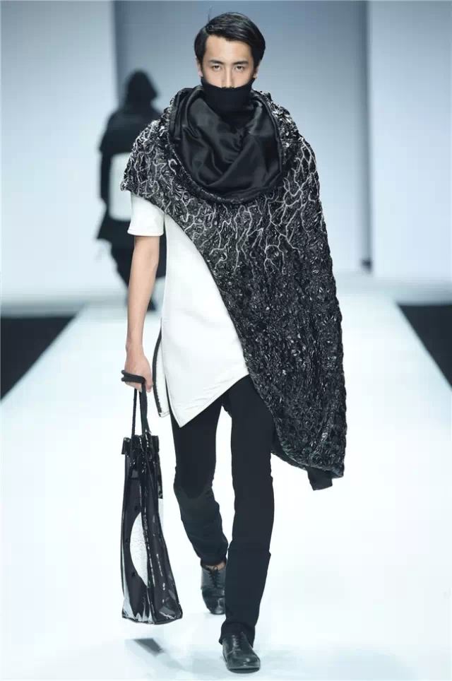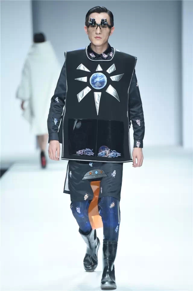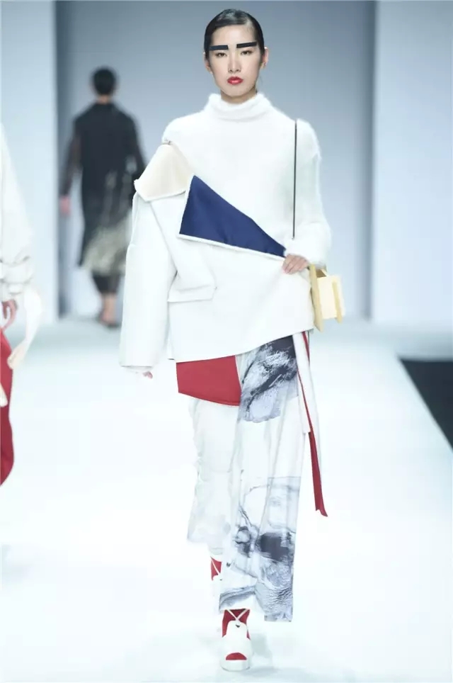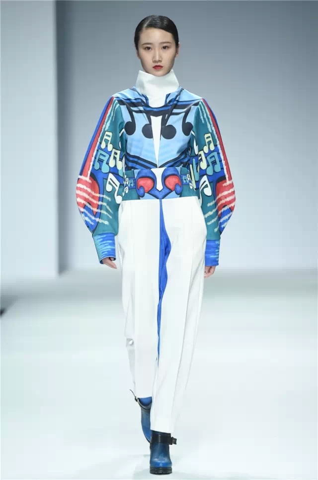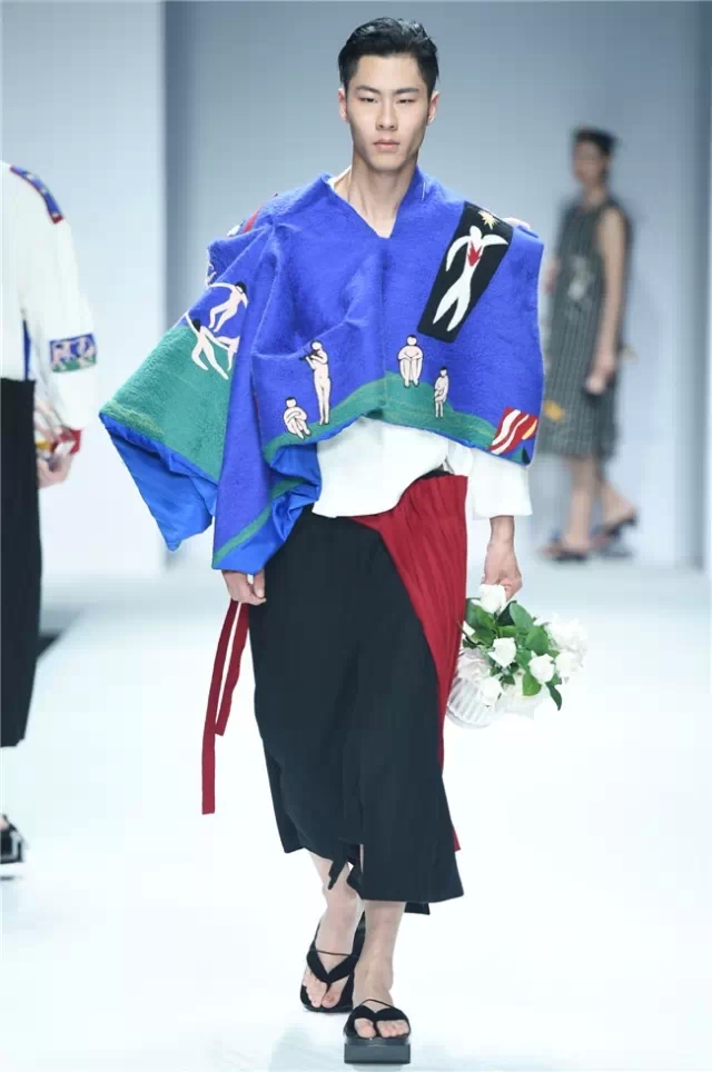 不拘泥于一種表現(xiàn),而是呈現(xiàn)出更多元的設(shè)計創(chuàng)想,展示學(xué)生們對于服裝設(shè)計的理解。服裝的形態(tài)可以更多元,表達(dá)也可以更充分。 正如發(fā)布會的主題SHOW TIME,這是學(xué)生們無限創(chuàng)意的展示時刻。在不同篇章中,服裝設(shè)計有夸張且飽和度極高的幽默裝飾圖案,有不對稱剪裁的結(jié)構(gòu)狂想,也有用抽象幾何、無規(guī)則線性拼接的波普圖案。經(jīng)典被重塑、顛覆,在盛年錦時中奢華碰撞妖嬈,摩登遇見民族,浪漫邂逅柔美。 開場一群陽光青年在T臺上站定,動感音樂與創(chuàng)意的設(shè)計共同激發(fā)著觀眾的感官。之后的展現(xiàn)更像是靈感碰撞的花火,藍(lán)色毛線編織的斗篷、未來感十足的發(fā)光服飾……面料再造、不規(guī)則的拼接、鏤空的設(shè)計、精靈般的演繹,表達(dá)語言豐富精彩。壓軸出場的名為Verve Museum(熱情博物館)的設(shè)計靈感源自馬蒂斯的畫作,設(shè)計師以毛粘、針粘的方式表現(xiàn)日本風(fēng),藝術(shù)感十足。 本場服裝不僅偏向成衣化,同時更注重服裝與穿著者之間的情感紐帶,達(dá)到了藝術(shù)性和實用性的平衡。學(xué)生們在追求原創(chuàng)設(shè)計與張揚(yáng)個性時,也沒有忽視對市場的平衡。(王賽)