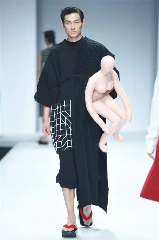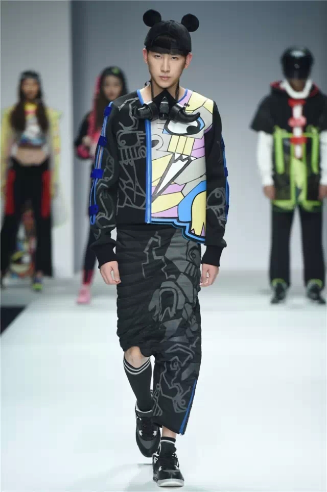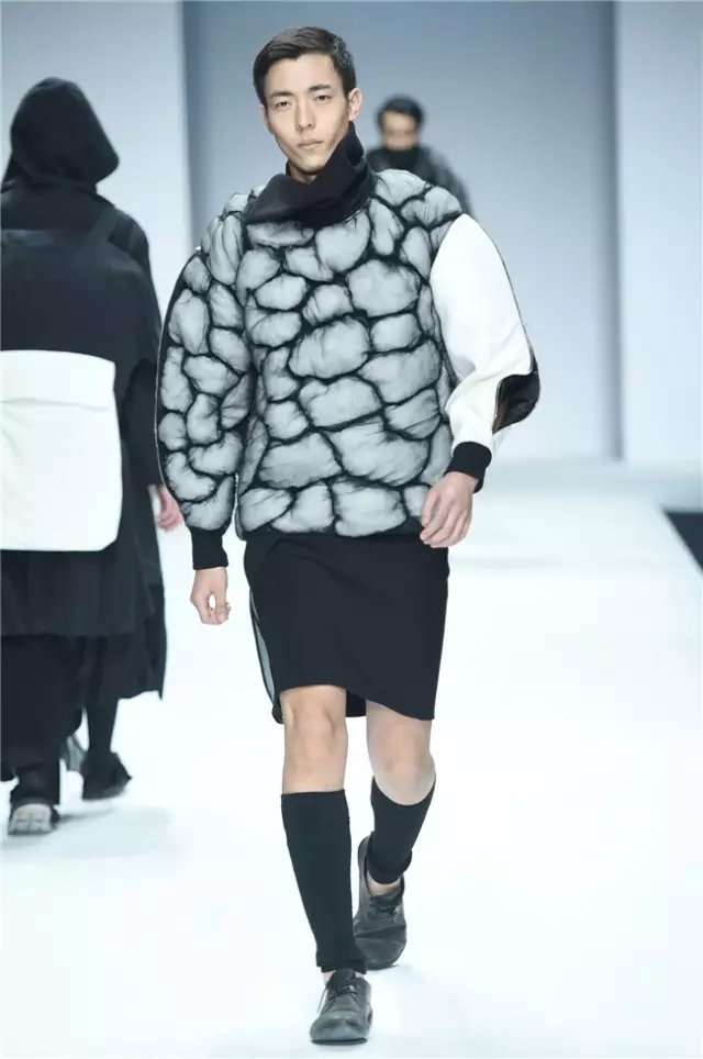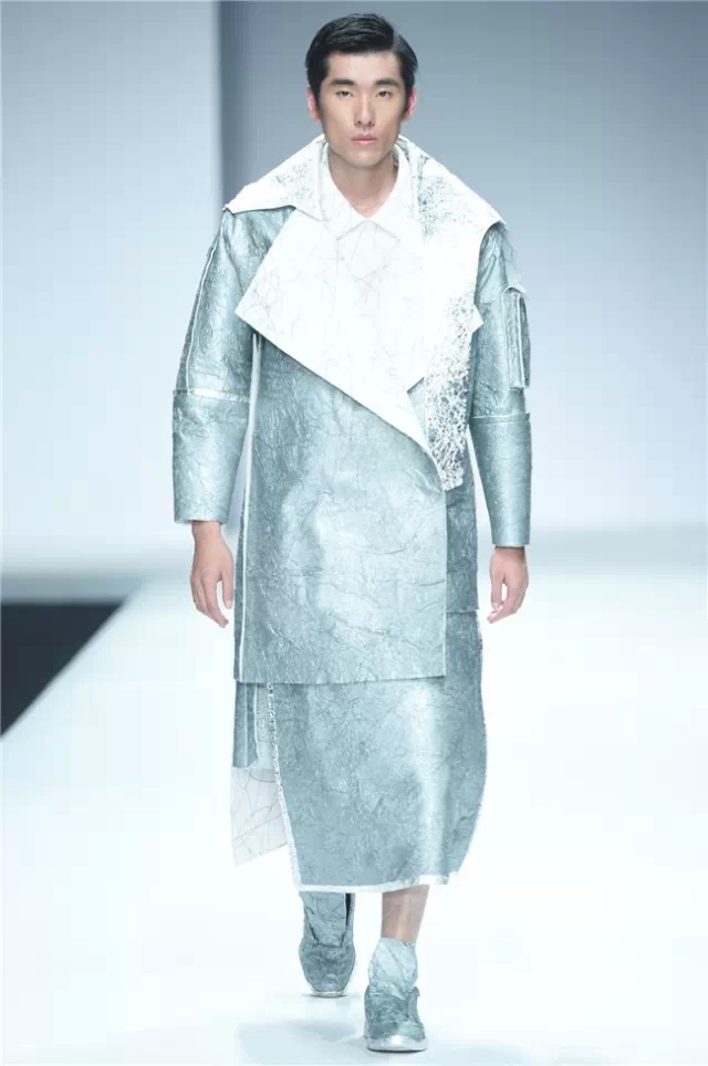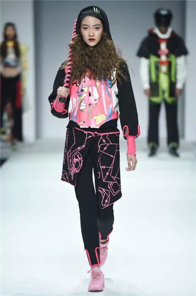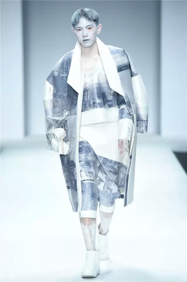 不拘泥于一種表現(xiàn),而是呈現(xiàn)出更多元的設(shè)計創(chuàng)想,展示學(xué)生們對于服裝設(shè)計的理解。服裝的形態(tài)可以更多元,表達(dá)也可以更充分。 正如發(fā)布會的主題SHOW TIME,這是學(xué)生們無限創(chuàng)意的展示時刻。在不同篇章中,服裝設(shè)計有夸張且飽和度極高的幽默裝飾圖案,有不對稱剪裁的結(jié)構(gòu)狂想,也有用抽象幾何、無規(guī)則線性拼接的波普圖案。經(jīng)典被重塑、顛覆,在盛年錦時中奢華碰撞妖嬈,摩登遇見民族,浪漫邂逅柔美。 開場一群陽光青年在T臺上站定,動感音樂與創(chuàng)意的設(shè)計共同激發(fā)著觀眾的感官。之后的展現(xiàn)更像是靈感碰撞的花火,藍(lán)色毛線編織的斗篷、未來感十足的發(fā)光服飾……面料再造、不規(guī)則的拼接、鏤空的設(shè)計、精靈般的演繹,表達(dá)語言豐富精彩。壓軸出場的名為Verve Museum(熱情博物館)的設(shè)計靈感源自馬蒂斯的畫作,設(shè)計師以毛粘、針粘的方式表現(xiàn)日本風(fēng),藝術(shù)感十足。 本場服裝不僅偏向成衣化,同時更注重服裝與穿著者之間的情感紐帶,達(dá)到了藝術(shù)性和實用性的平衡。學(xué)生們在追求原創(chuàng)設(shè)計與張揚(yáng)個性時,也沒有忽視對市場的平衡。(王賽)