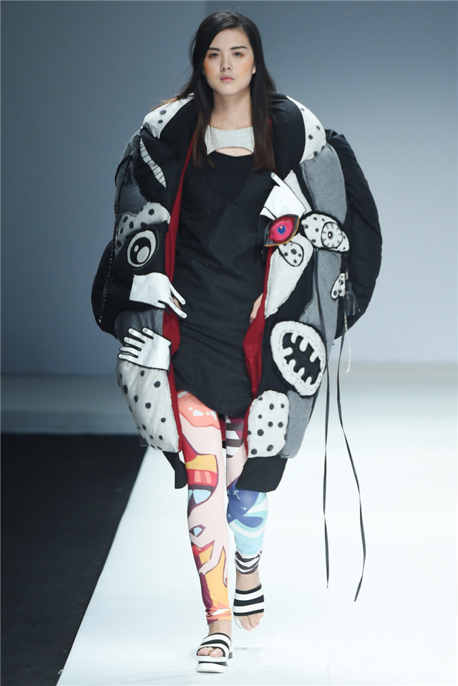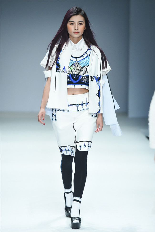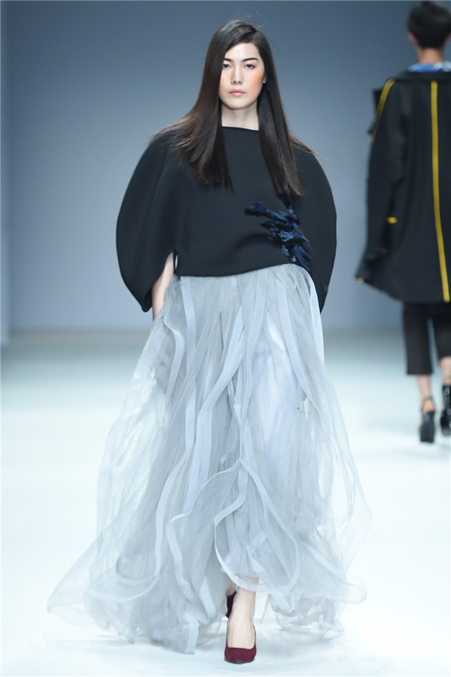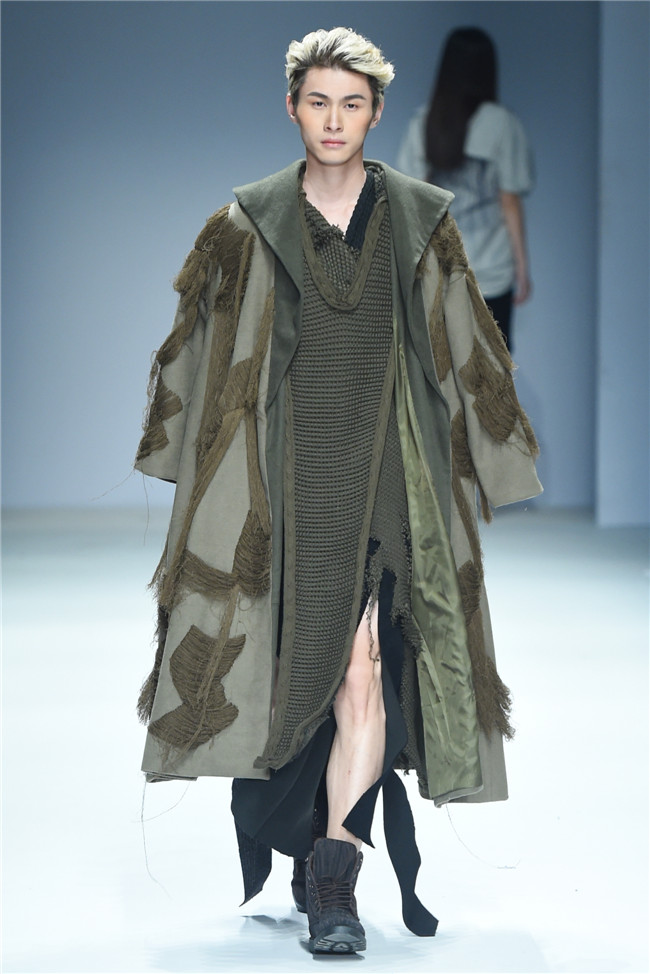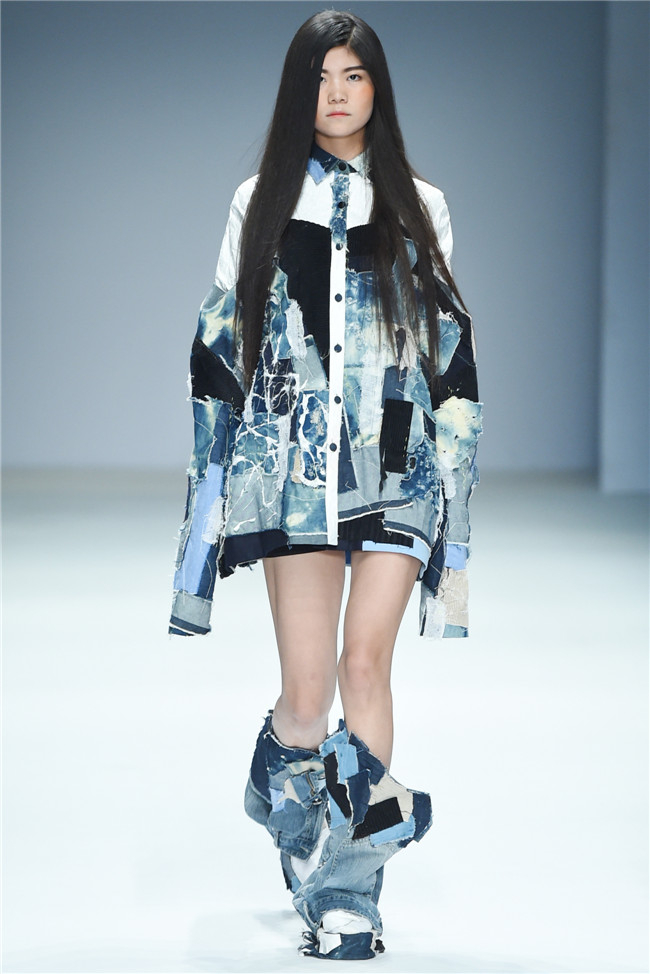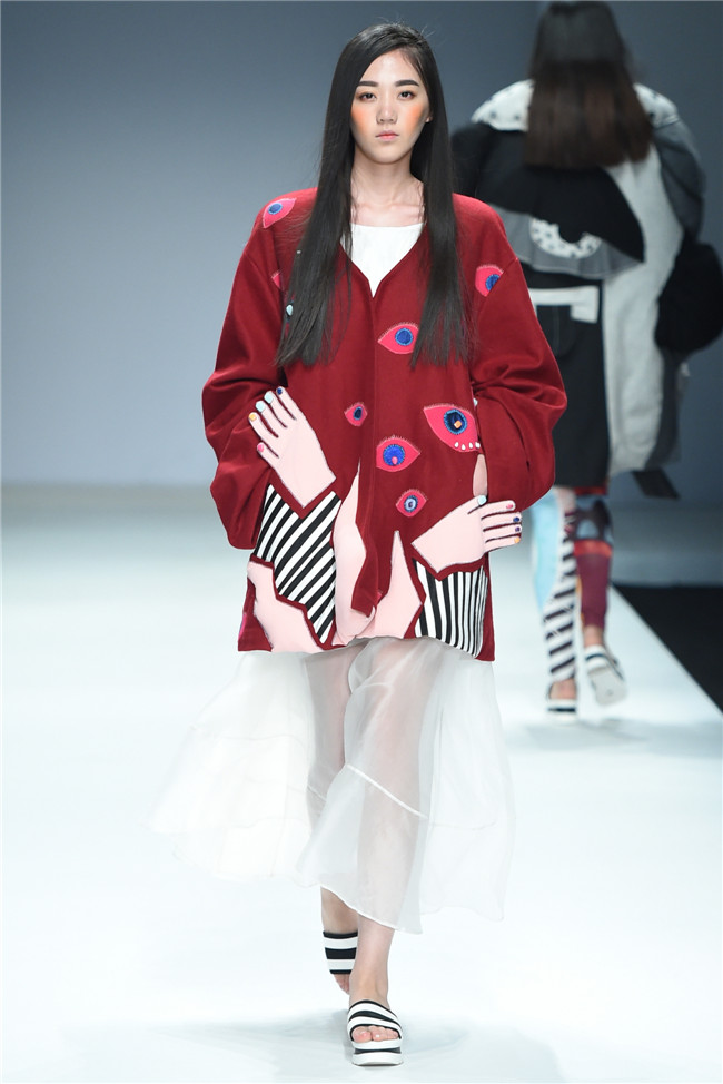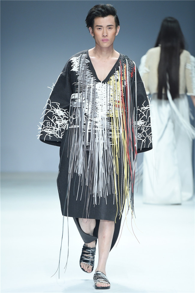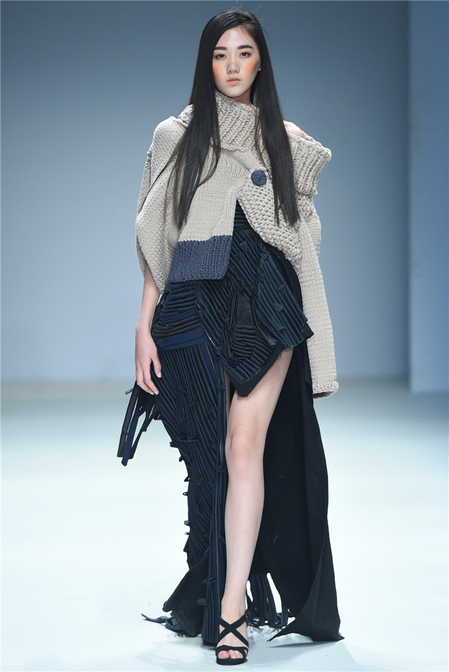 本場(chǎng)發(fā)布秀主題為“呼吸”。呼吸,實(shí)現(xiàn)著肌體與外界之間的交換。創(chuàng)作,找尋鏈接歷史與現(xiàn)在的一個(gè)個(gè)鏈環(huán)。通過(guò)一次次深呼吸的機(jī)會(huì),吸收中華文明精髓之氣,使其與世界時(shí)尚之風(fēng)交融,煥發(fā)其全新的生命力。 開(kāi)場(chǎng)粗獷的褶裥和隨后多款寬松的廓形體現(xiàn)出一種原生態(tài)的美感;隨后大量的街頭風(fēng)格服飾用大膽的色彩講述著青春的故事;后半場(chǎng)大量的面料改造升華了服裝的藝術(shù)表達(dá),豐富的細(xì)節(jié)使服裝更加耐讀。 80余件畢業(yè)生作品以大氣輪廓與傳統(tǒng)面料的對(duì)接,輔以精巧的工藝及印花圖案,鮮活而富有內(nèi)涵,緊扣時(shí)尚脈搏的跳動(dòng)。在設(shè)計(jì)細(xì)節(jié)中,很多學(xué)生采用了傳統(tǒng)紋樣、手工刺繡、編織的手法,同時(shí)混合皮革、毛皮、雪紡等多種材料,增強(qiáng)了作品的視覺(jué)吸引力。(董笑妍)