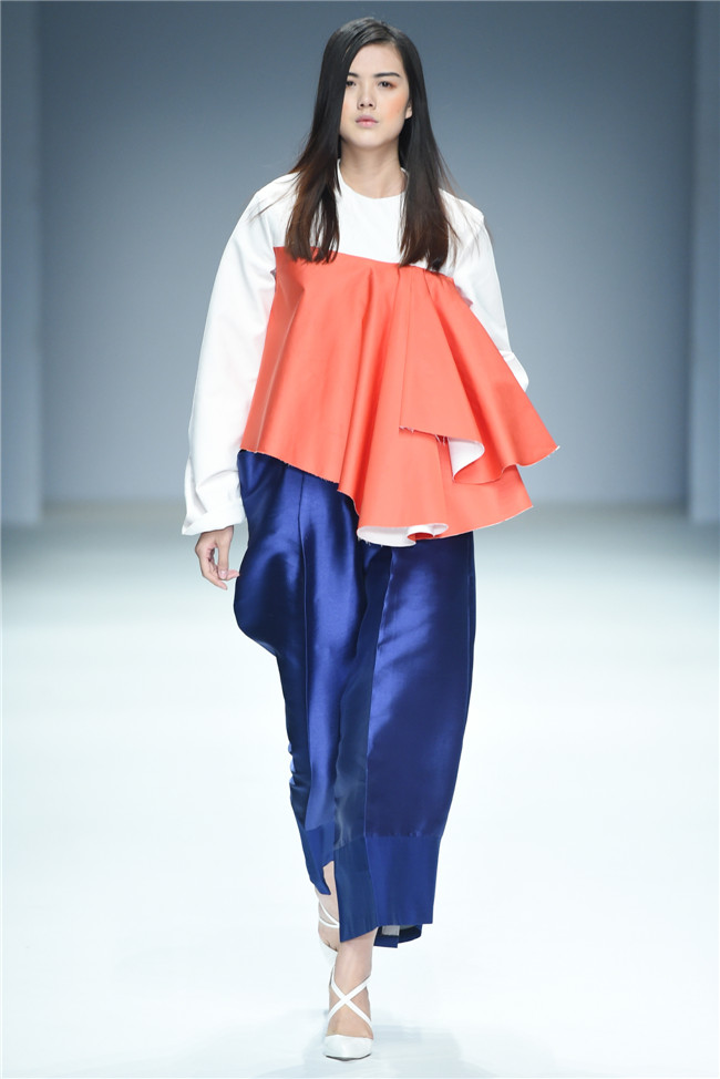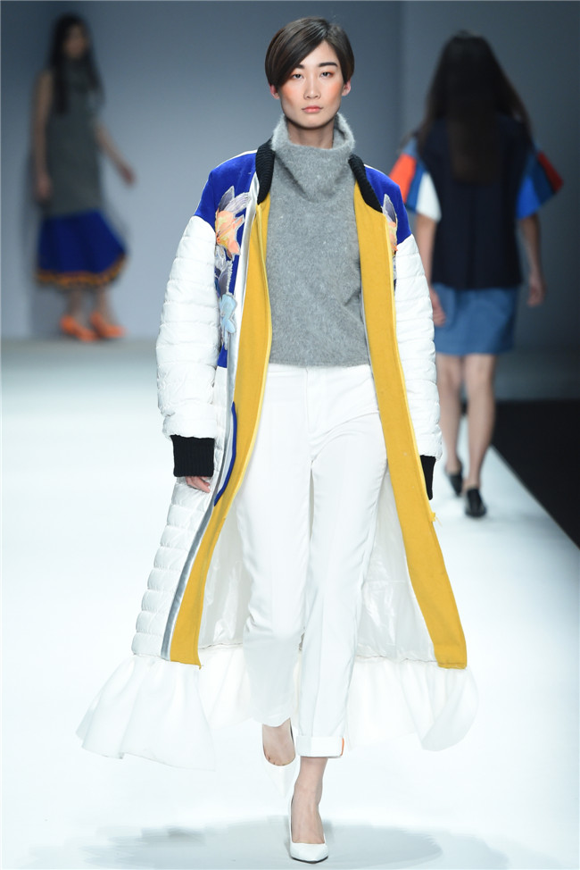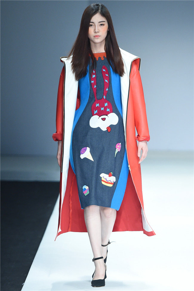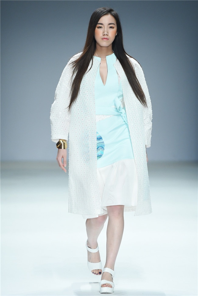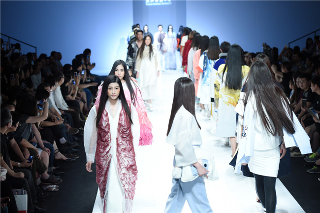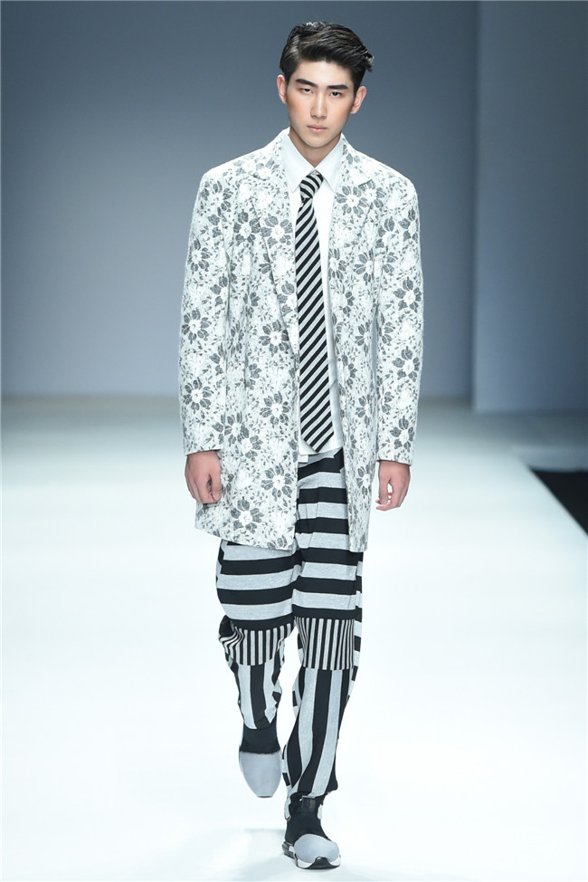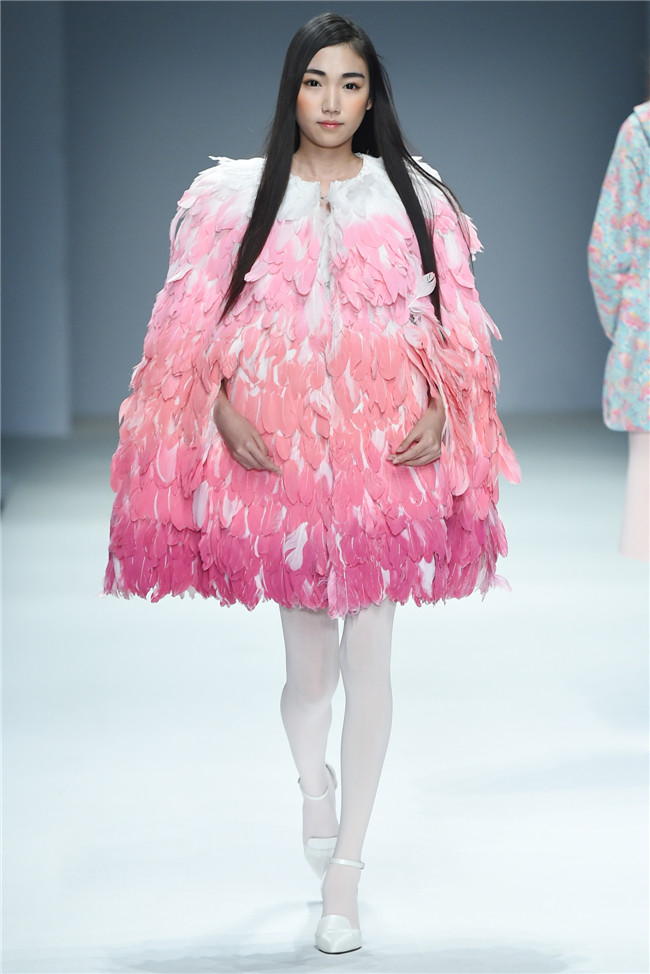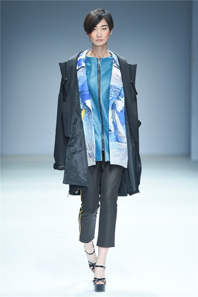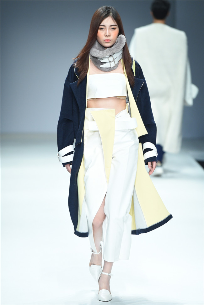 本場(chǎng)發(fā)布秀主題為“呼吸”。呼吸,實(shí)現(xiàn)著肌體與外界之間的交換。創(chuàng)作,找尋鏈接歷史與現(xiàn)在的一個(gè)個(gè)鏈環(huán)。通過(guò)一次次深呼吸的機(jī)會(huì),吸收中華文明精髓之氣,使其與世界時(shí)尚之風(fēng)交融,煥發(fā)其全新的生命力。 開(kāi)場(chǎng)粗獷的褶裥和隨后多款寬松的廓形體現(xiàn)出一種原生態(tài)的美感;隨后大量的街頭風(fēng)格服飾用大膽的色彩講述著青春的故事;后半場(chǎng)大量的面料改造升華了服裝的藝術(shù)表達(dá),豐富的細(xì)節(jié)使服裝更加耐讀。 80余件畢業(yè)生作品以大氣輪廓與傳統(tǒng)面料的對(duì)接,輔以精巧的工藝及印花圖案,鮮活而富有內(nèi)涵,緊扣時(shí)尚脈搏的跳動(dòng)。在設(shè)計(jì)細(xì)節(jié)中,很多學(xué)生采用了傳統(tǒng)紋樣、手工刺繡、編織的手法,同時(shí)混合皮革、毛皮、雪紡等多種材料,增強(qiáng)了作品的視覺(jué)吸引力。(董笑妍)