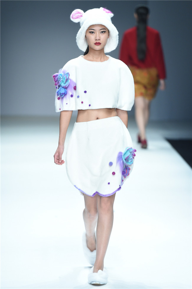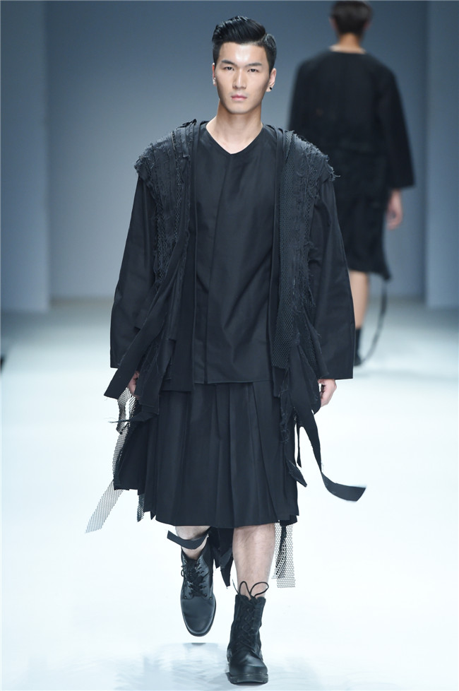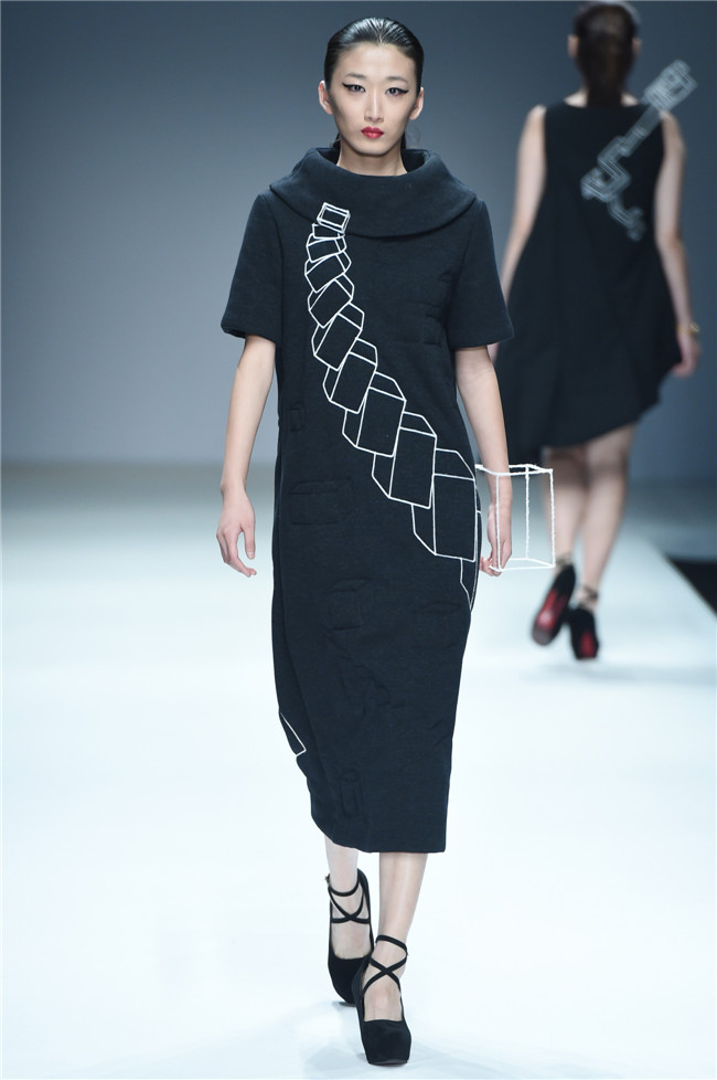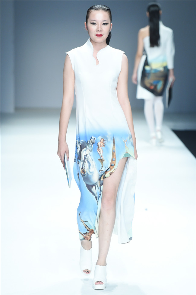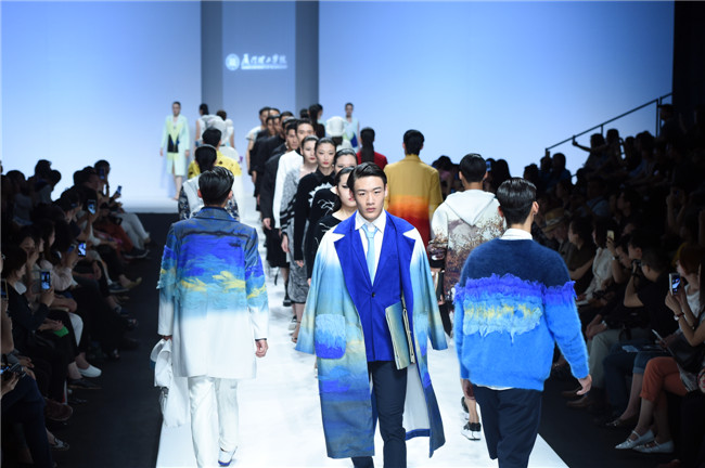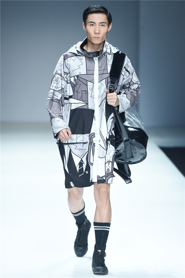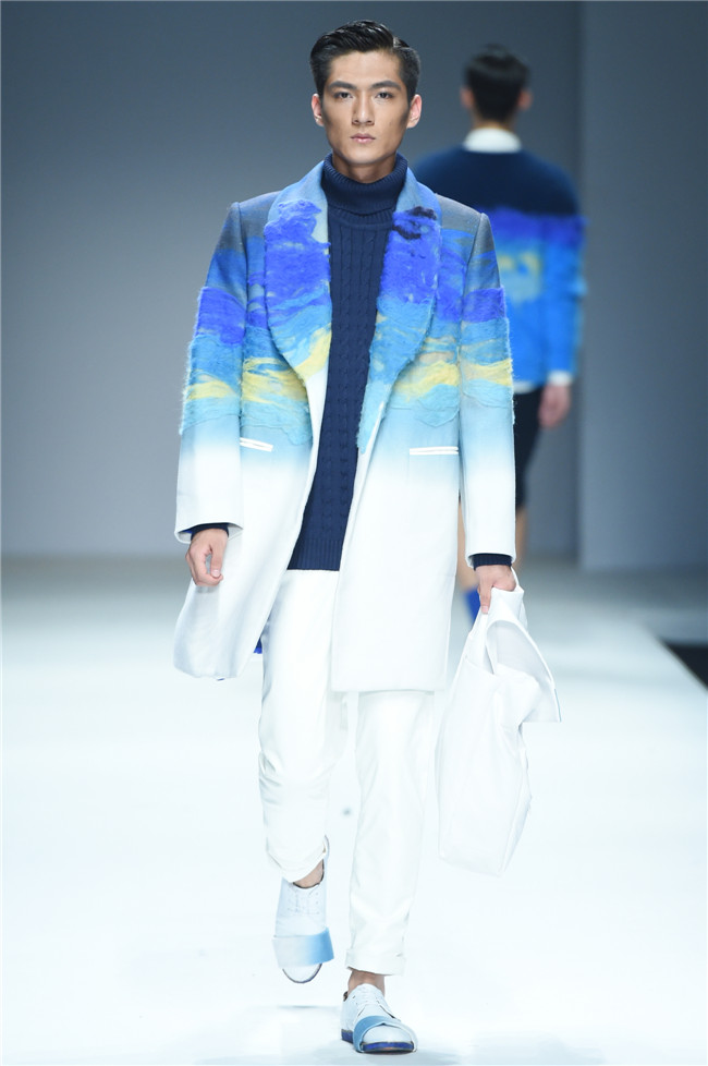 廈門理工學院設計藝術與服裝工程學院發布會的主題是“尚·廈”,展示了26名學生的3個系列共90多套作品,風格定位以創意成衣為主。 在本場發布中,精良的制作工藝是一大看點,不論是打破傳統的男裝裁剪廓形,還是傳統男裝版型基礎上演變來的創意夾克,本屆學生的作品很好地承襲了閩派男裝設計的工藝優勢,尤其是在時尚男裝概念的表現上,充分展現了學生們的創新能力。 本屆畢業生的作品雖然大多采用了保守沉穩的黑白色系,但不乏亮點,如以藍色為主打色的針織休閑毛衫,既采用了西服的經典廓形元素,又兼具針織毛衫的隨性與靈動。 當然,除了創意男裝成衣作品外,也有部分突破閩系男裝地域特色的時尚女裝作品。這些設計承載了畢業生們的個人興趣愛好或對現實生活的思索。比如有時下流行的多肉植物圖案為設計元素的女裝系列,還有以設計師本人卡通形象為主題的風格女裝,甚至還有把達利的超現實主義化作《永恒的記憶》圖案作為設計元素的作品。(賴松)