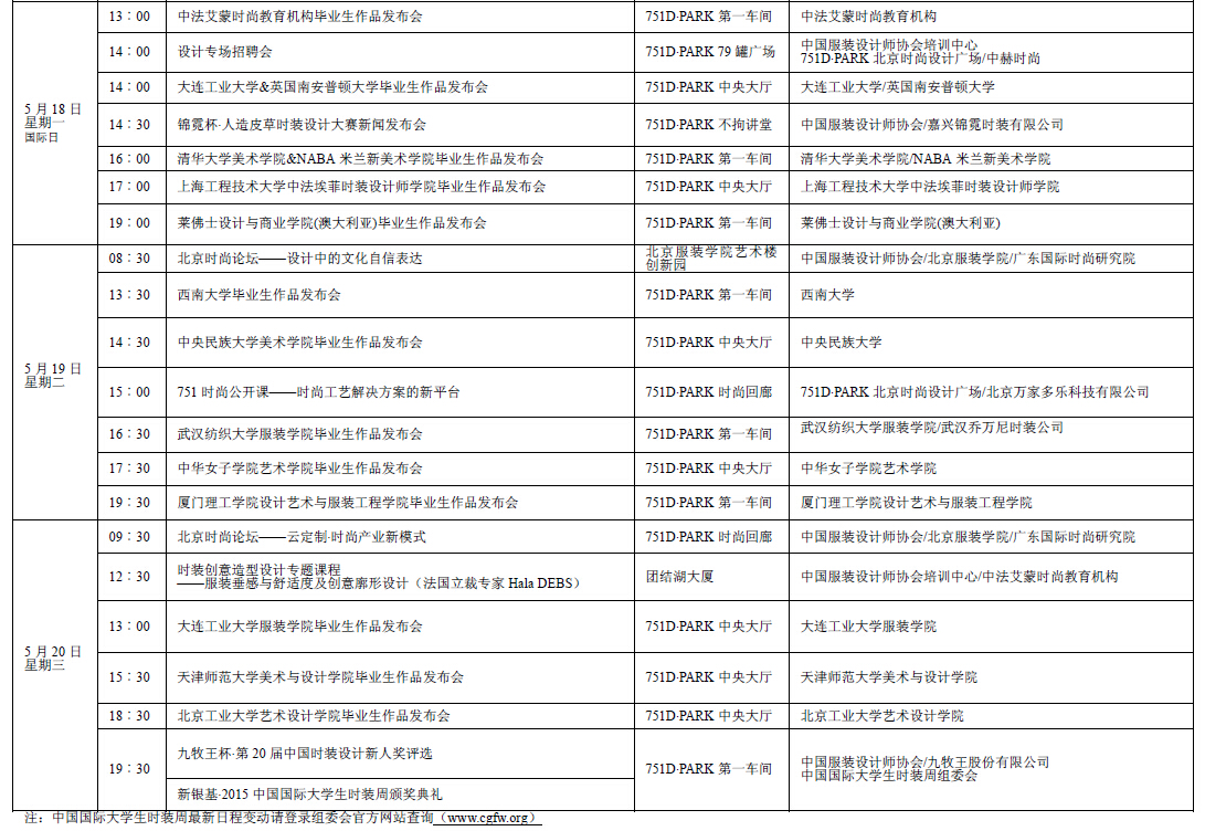 新銀基·2015中國國際大學(xué)生時(shí)裝周日程表