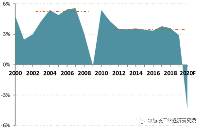 圖1:2000~2019年發達和發展中國家GDP增長情況