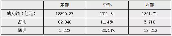 圖表4 東中西部地區成交額占比、增速表