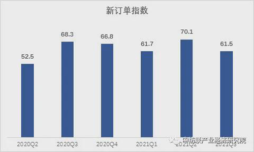 據測算,2021年三季度我國紡織行業新訂單指數為61.5,比二季度下降8.6個點,但市場需求仍處于增長區間。主要是國內疫情多源多點發生,居民出行和消費受到一定影響;國際市場需求疲軟,運輸成本上漲;加上去年同期基數較高,也影響了新訂單增長。此外,自5月中旬以來,南方大面積錯峰用電,部分區域電力供應形勢緊張,導致企業不敢接單。