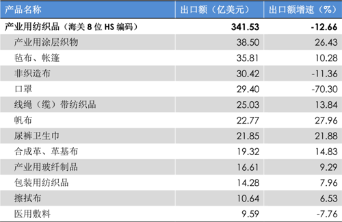 2022年1-9月產(chǎn)業(yè)用紡織品行業(yè)及主要產(chǎn)品出口情況