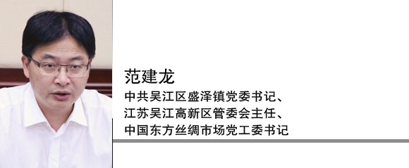 本刊記者_(dá)李曉慧 行業(yè)下行壓力的存在已經(jīng)常態(tài)化。紡織產(chǎn)業(yè)集群積極應(yīng)對(duì)的同時(shí),也開始更加客觀、主動(dòng)地思考二次創(chuàng)業(yè)的發(fā)力點(diǎn)。 日前,中共吳江區(qū)盛澤鎮(zhèn)黨委書記、江蘇吳江高新區(qū)管委會(huì)主任、中國東方絲綢市場黨工委書記范建龍亮相“2015首屆中國生態(tài)環(huán)保面料設(shè)計(jì)大賽”媒體見面會(huì),一同出席的還有他的“智囊團(tuán)”:中共吳江區(qū)盛澤鎮(zhèn)黨委副書記、江蘇吳江高新區(qū)管委會(huì)副主任、中國東方絲綢市場黨工委副書記、管委會(huì)主任趙菊觀,江蘇吳江高新區(qū)管委會(huì)副主任鐘永林,中共吳江區(qū)盛澤鎮(zhèn)黨委委員、中國東方絲綢市場管理辦公室副主任胡偉彪。 在與媒體的交流中,這位剛上任不久的盛澤新掌門人,直面問題坦誠交流,同時(shí)也有備而來,既分析困難和壓力,也利落地亮出了強(qiáng)有力的三道“令箭”。