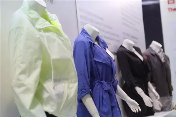 石獅展團是中國紡織工業聯合會會長王天凱每屆都要參觀的展團之一,也被王天凱稱贊“每年都有進步”。此次他們依舊統一暖色調裝修,在整個展館中獨樹一幟。益盛紡織的羊絨蛋白纖維面料、新宏興紡織的雙面呢印花面料、臺隆紡織的變色面料都令人耳目一新。中國紡織信息中心的兩位女領導在新宏興展位上試穿由雙面呢印花面料制成的女士外衣,并擺出pose,引來了一片閃光燈和叫好聲。