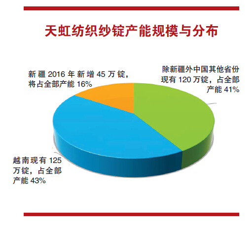角力越南 將氨綸包芯紗作為主導產業的天虹,已不局限于中國的紡織工業,而是將觸角延伸到了全球的產業格局當中。 正當天虹蒸蒸日上,并于2004年在香港成功上市之后,洪天祝敏銳地發現,國內人口紅利正在攤薄,人民幣升值幅度明顯,對國內紡織企業形成了另外一種壓力。但同時,國家有關部門在積極出臺政策,鼓勵紡織業走出國門出去建廠,提供了很多優惠政策。上市后,天虹的國際視野變得十分開闊,洪天祝認為,“走出去”建廠是大勢所趨。 為了弄明白走到哪里去的問題,洪天祝2005底開始出國考察,調研了斯里蘭卡、菲律賓、孟加拉等國家,最終鎖定越南。 天虹是中國較早赴越南投資的代表性企業之一。2005年,天虹集團決策層親赴越南廣寧省,精心調研,與越南各級政府都建立了良好的互信關系。天虹集團實施“越南產能擴張計劃”,先后投資建設天虹仁澤、天虹銀龍等項目,順利突破紗錠年產量100萬錠。 天虹的海外擴張步伐,趕上人民幣升值的全過程,進入極其有利于出口的快速發展期。同時,國家海外融資平臺也隨之建立,獲取資本的利息很低,助力天虹解決了融資結構的合理化問題。 同期,國內勞動力成本快速上升,在原料市場,棉花配額管理帶給國內紡企的負面影響也相當顯著,但因提前布局越南,天時地利之下,天虹有效規避了各項挑戰,迎風遠航。 落子越南是天虹發展歷程上的分水嶺,天虹變身成為在越南產能最大的中國紡織企業。截至目前,天虹在越南的產能達100萬錠,2015年年底將達125萬錠,而我國企業在越南的總投資大約是200萬錠。 縱觀中國紡織企業,天虹也將率先成為海外產能超過國內產能的企業。據估算,目前,天虹的越南產能約占全部產能的43%,預計2015年底達到50%左右。 2014年,隨著天虹海河工業區的開工建設,天虹對越南的開發進入了一個新階段。洪天祝曾表示:中國紡織工業以前一直做產品出口,未來也需要做產業出口,尤其在“一帶一路”戰略下,產業出口甚至可以上升到產業外交層面上。 他認為,隨著國家層面一系列貿易新規的制定,越南的潛力還將進一步被開掘。