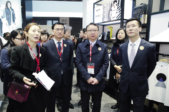 3月16日,中國國際服裝服飾博覽會2016(春季)在國家會展中心(上海)隆重開啟。本屆展會的面積達100000平方米,匯聚了來自中國、法國、德國、意大利、巴西、荷蘭、土耳其、日本、韓國、秘魯、西班牙、印度、比利時、英國、希臘、葡萄牙、蘇格蘭、中國香港、中國臺灣共20個國家及地區的1177家企業、1300余個品牌參展。 文化創意、智能制造、產業鏈重構、商業模式創新等行業變革的焦點和熱點貫穿于CHIC的各個展區、“展中展”及相關活動之中,濃厚的交流氛圍與火爆的商貿互動引起了業內的廣泛關注。 中國紡織工業聯合會會長王天凱,原會長杜鈺洲、原副會長許坤元,副會長兼秘書長高勇,副會長孫瑞哲、徐文英、楊紀朝、夏令敏,黨委副書記陳偉康,紀委書記王久新等領導和嘉賓參觀了春季聯展。 上午9時,中國紡織工業聯合會副會長孫瑞哲、徐文英等行業領導在中國紡織工業聯合會會長助理、中國服裝協會常務副會長陳大鵬等CHIC主辦方負責人陪同下參觀了CHIC2016春季展。 在“商旅男仕”展區,孫瑞哲一行先后參觀了森馬、阿仕頓、杉杉、紅豆、大楊定制、特步、太平鳥、SW1960等男裝企業的展位,與展商代表探討男裝性價比、款式創新及西裝定制體驗等熱門話題。