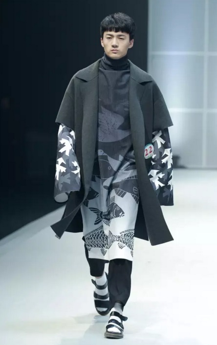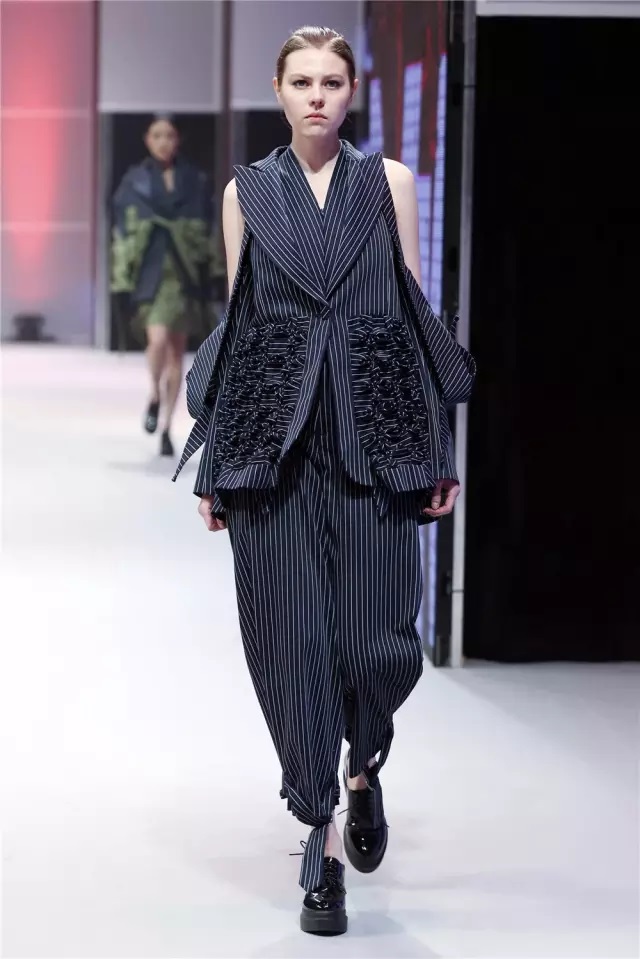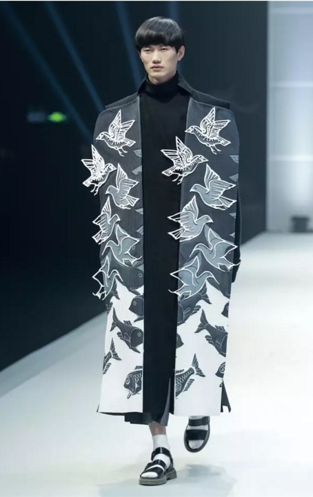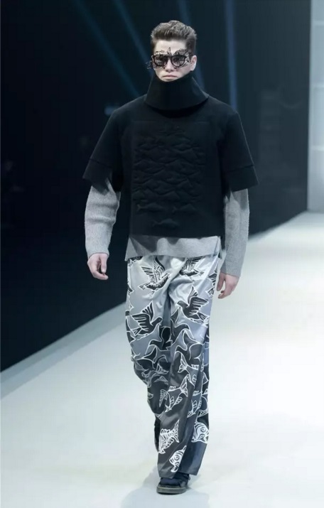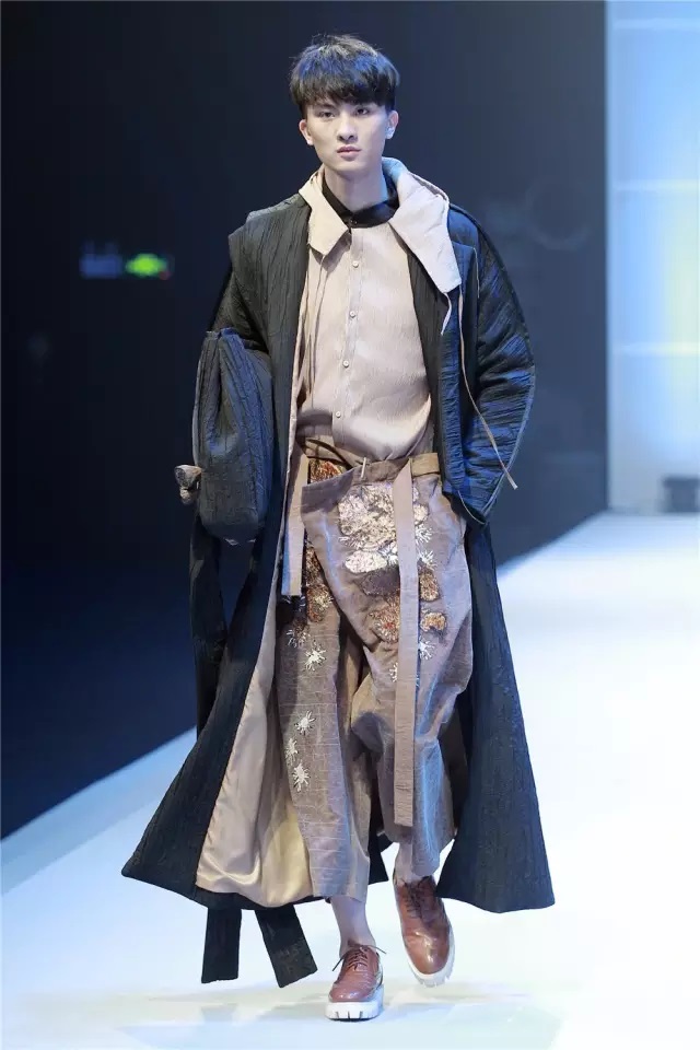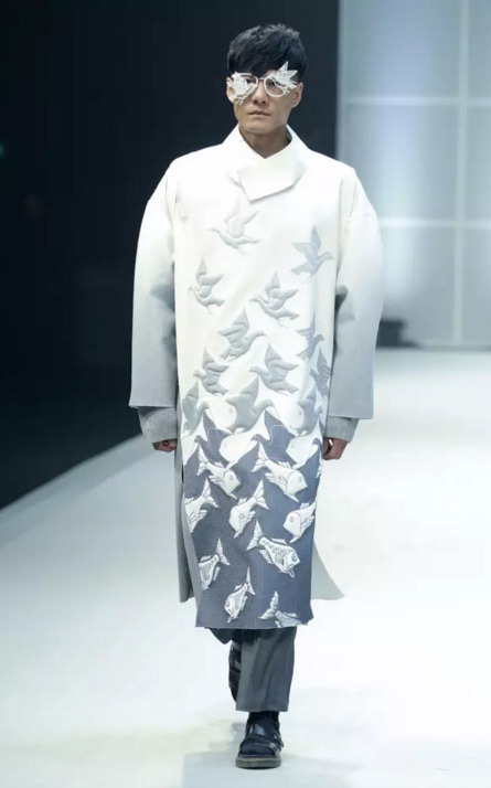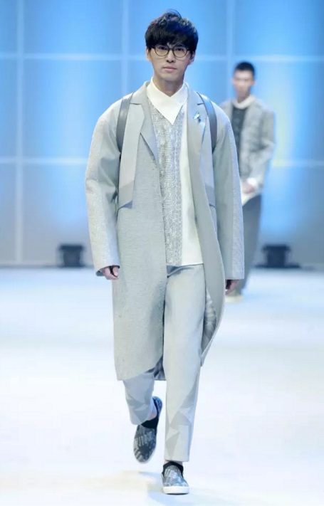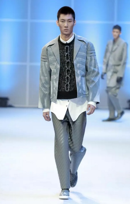 金獎作品 當最終金獎敲定之時,賽場內,胡欣逸的“助威團”爆發出了雷霆般的歡呼聲,也將大賽帶入了最高潮。賽后胡欣逸在接受《紡織服裝周刊》記者采訪時表示:“借助大賽我證明了自己,也堅定了自己未來設計師的職業選擇,這筆豐厚的獎金將用于未來的深造。”賽后他希望自己能有機會進入著名設計師的工作室實習,進一步豐富自己的設計理念,提高設計能力。