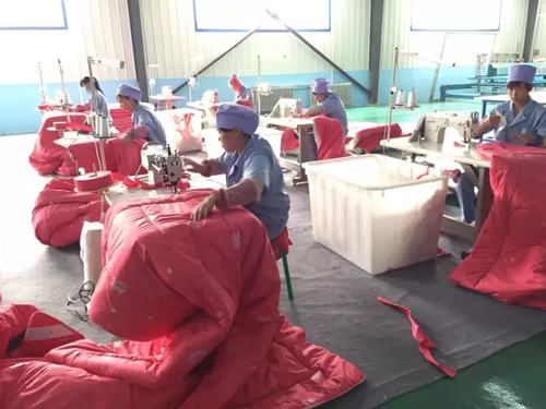 寧夏偉圣絨毛紡織有限公司生產車間。 作為寧夏羊絨被、羊毛被家紡產業的領頭羊,寧夏偉圣絨毛紡織有限公司近年來加快技術改造,斥資購入全自動生產線,進行設備改良和工藝創新,不斷提高產品水平,取得良好成效??偨浝項钪緦幈硎荆笆澜缪蚪q看中國,中國羊絨看寧夏”,未來公司將繼續專注于做精、做優產品,不斷推陳出新,努力打造羊絨被、羊毛被國內知名品牌,讓具有地方特色的產品走出寧夏、走出中國、走向世界。 企業的努力也讓利通區的傳統毛紡產業蓬勃興盛。數據顯示,2015年,生態紡織產業園完成分梳羊絨2500噸,分梳羊毛1500噸,裘皮制品100萬件,家用羊毛、羊絨被20萬條,產銷兩旺。 “下一步,利通區將繼續充分利用毛紡織產業特色資源,從更廣范圍、更寬領域參與國際、國內市場分工,推動產業繼續向前邁進?!遍Z浩表示。 發揮優勢,利通紡織前景廣闊 利通紡織業近年來的發展,與其當地的資源優勢與良好的投資環境息息相關。 “企業來利通投資,最初看重的還是成本優勢。”寧夏恒豐紡織集團副總經理韓國鋒介紹,“綜合勞動力工資、電價、水價等因素,在這里生產1噸紗的成本比山東要低1千多元。”另外,回族員工善良淳樸、勤勞肯干、熱愛清潔等高素質,也給他留下了深刻的印象。 適宜的自然環境也是直接的吸引所在。利通區晝夜溫差大,夏天幾乎連空調都不用,水質良好,而且十分符合紡織業對溫濕度的要求“在內地,夏季高溫高濕是很難紡紗的季節,但在利通卻感受不到這種不利因素?!眳侵液愫涂椩炜萍加邢薰究偨浝硗鯐札R說,“有時候,內陸地區由于溫濕度等原因很難高效開起來的設備,在利通卻能開到很高的效率,很適合生產高支紗。”