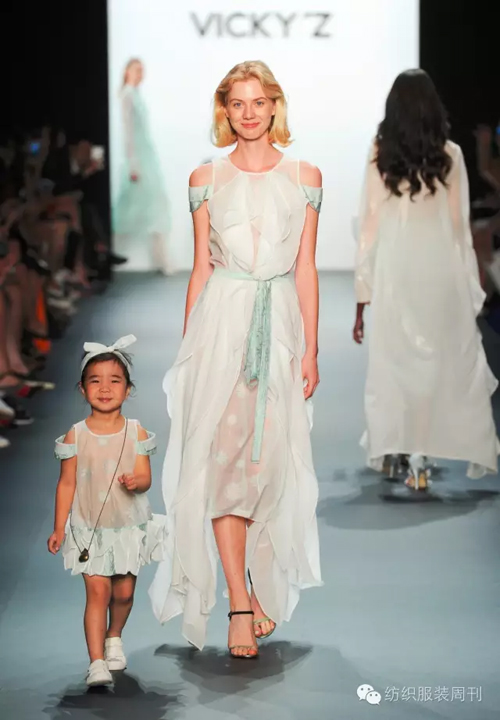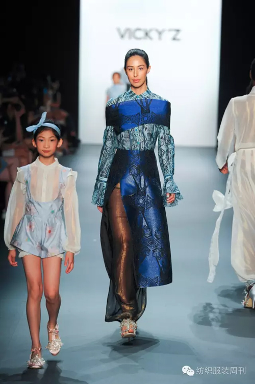 活動(dòng)當(dāng)天,中國(guó)駐紐約總領(lǐng)館歡迎副總領(lǐng)事張美芳,聯(lián)合國(guó)經(jīng)濟(jì)發(fā)展委員會(huì)主席趙云龍,鳳凰衛(wèi)視駐華爾街資深記者節(jié)目主持人龐哲、“哈佛女孩兒”劉亦婷等華人名流蒞臨恭賀,并在頭排看秀。 此外, Global Fashion Channel、Vogue Italia、Fashion TV、FashionNetwork、New York1、New York Magazine等國(guó)際時(shí)尚媒體,Maja Malnar、Ellery、ROBIN SEBASTIAN、Caitlin Oconnor、Mingtong Sun、Teng Yun等在Instagram、Twitter、微博、微信社交媒體上深受關(guān)注的大V、網(wǎng)紅,以及一批專業(yè)的國(guó)際時(shí)尚買手也齊聚現(xiàn)場(chǎng),共同見(jiàn)證了VICKY ZHANG品牌成長(zhǎng)史上這一無(wú)榮耀時(shí)刻。 “偎”愛(ài)發(fā)聲,表達(dá)現(xiàn)代親子設(shè)計(jì) 據(jù)了解,VICKY ZHANG 2017春夏親子系列專場(chǎng)發(fā)布秀的主題是“偎”,旨在表達(dá)“親情相依、以愛(ài)相偎”的設(shè)計(jì)內(nèi)涵。本次大秀共有四大系列80套新品進(jìn)行發(fā)布。