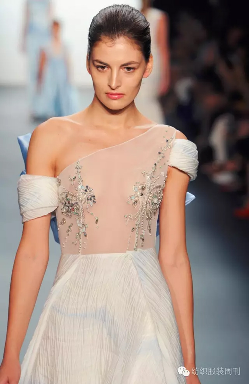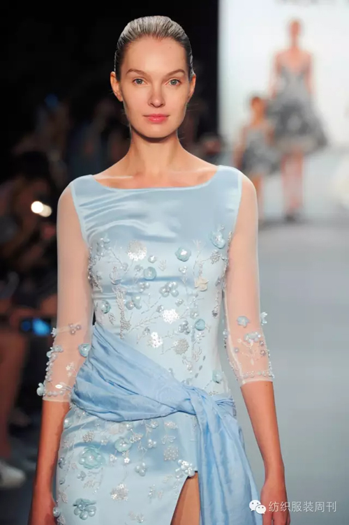 工藝細(xì)節(jié)方面,本季設(shè)計(jì)則運(yùn)用了蘇繡、提花、印花、珠繡等工藝,尤其是從細(xì)節(jié)上突顯許馨尹最擅長(zhǎng)的高端禮服設(shè)計(jì)。