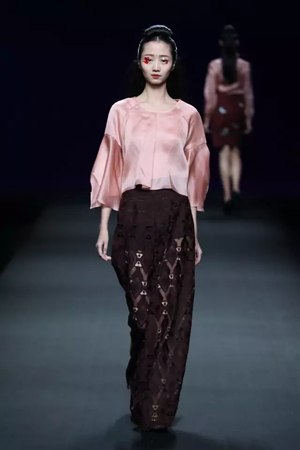 而廣州香云故里文化發(fā)展有限公司旗下品牌“香云故里”,是以香云紗為主創(chuàng)元素,集設計、生產(chǎn)、銷售于一體的服飾品牌,旗下涵蓋男裝、女裝及國內(nèi)首創(chuàng)的香云紗制作的鞋、包飾品。金憓擔綱了主創(chuàng)設計師。