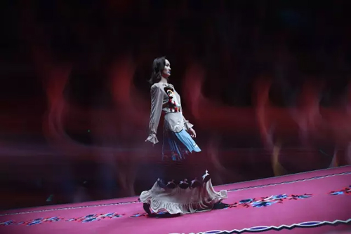 作為一位觀者,在時裝周短短的時間里,一心只沉醉在整體氛圍中,沉醉在被創作者創造的環境中。被各種視覺與聽覺的震撼圍繞,模特在舞臺中央身著一套套服裝,在眼前川流不息地行走著,那是一種目不暇給,甚至走馬觀花的感覺。相信每一場時裝秀的呈現都有一個完整系統,由舞臺、燈光、音樂、模特、走位、妝容、配飾等組成,缺一不可,任一部分稍有紕漏都似乎足以毀掉一場秀。這一切,原則上都應該是為了襯托服裝,為了讓觀者更關注服裝,然而,又因為這一切是那么的舉足輕重,它似乎正在撼動著服裝的重要性。一場令所有人驚嘆絕倫的時裝秀,必定包含諸多看點,在離開秀場后,回想的是那創意無限的舞美,絢麗的燈光,更甚是那開場的表演,而服裝,雖在眼前不斷閃動,卻已然成為在一個極其華麗的環境中央所放置的一盞莫大的走馬燈。這讓我反思,在一場時裝秀中,極其有限的空間和有限的時間里,服裝與秀如何微妙平衡。
